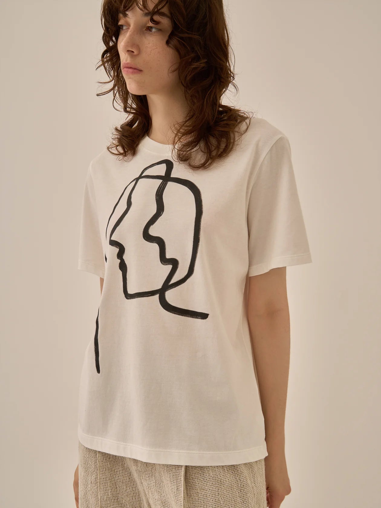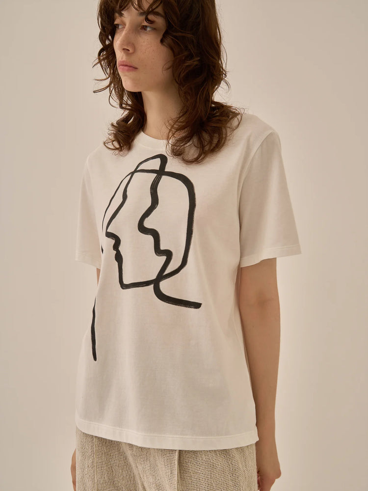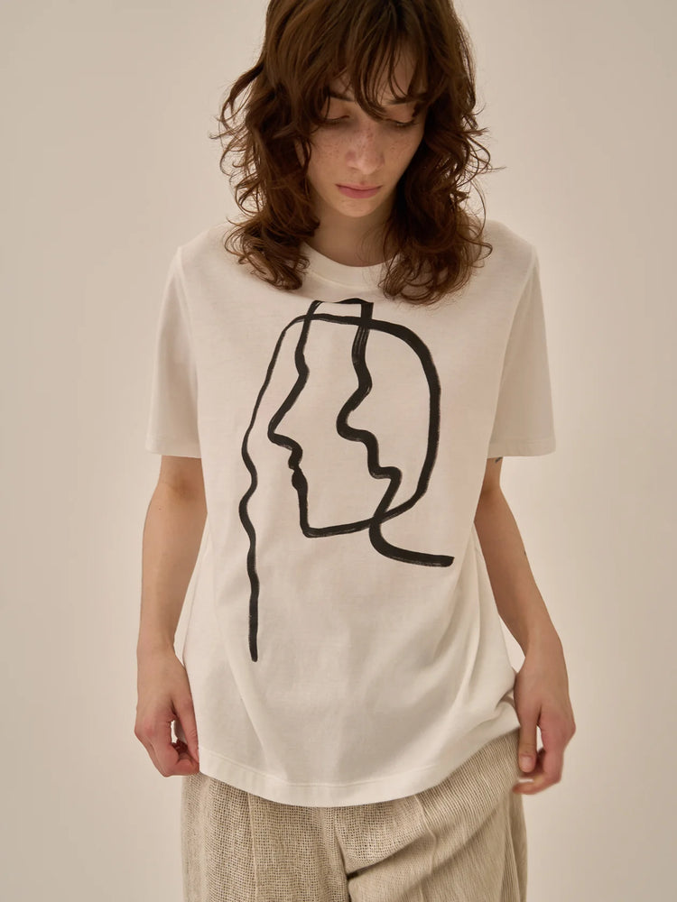 AKIRANAKA Line portrait T-shirt WH