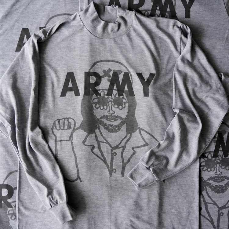 ボディは米軍のトレーニングようのカットソーなので柔らかく着心地も抜群に良い素材。フロントのARMYとバックのAマークはリフレクタープリント。体から放出される汗や熱気を生地が調整してくれるので夏は涼しく冬は蒸れない快適なアイテム。一枚でも重ね着やインナーにもオススメです。