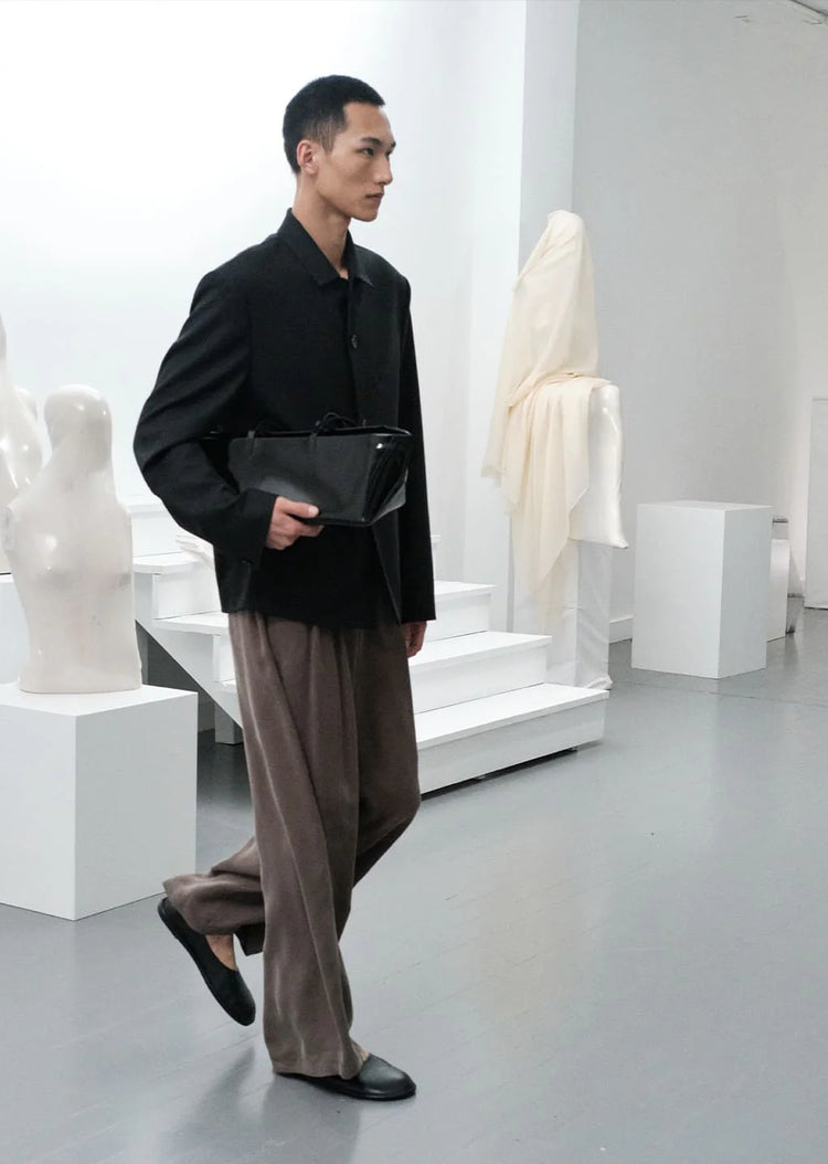 キュプラ素材のワイドルーズフィット ツータックパンツ
