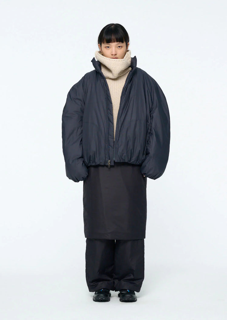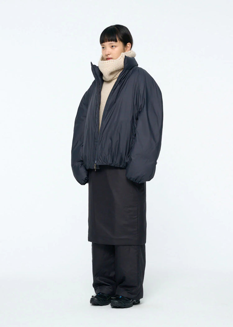 控えめな光沢感で仕上げたミニマルなパディッドスカート