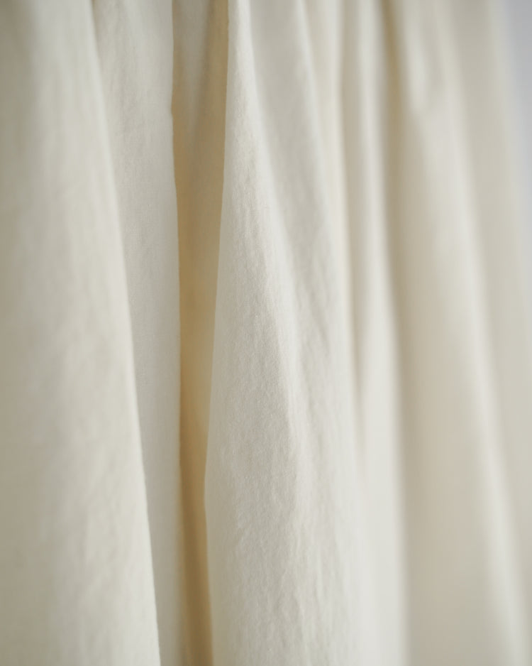 1オンス ファデッドVラインヨーク切開で独特なデザインを披露し、ヨーク線下の豊かなシャーリングが引き立つドレスです。 裾に行くほどAラインに広がるシルエットが優雅さをプラスし、大きなカラーと前裾の大きなボタンの仕上げがアウターのような感じを与えます。 カフスの上の二本あごで袖にボリューム感を加え、両サイドのシンポケットで実用性を加えたデザインです。