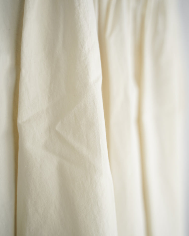 前後にVラインのヨーク切開下の豊かなシャーリングが目立ち、袖は2つのタックディテールでボリューム感を加えました。 シアーなコットン素材で製作されており軽い感じがして、7つのボタンクロージングで精巧に仕上げられています。 比較的小さいサイズのカラーが全体的なデザインポイントになっておしゃれなムードが演出できます。