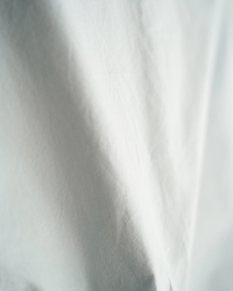 スクエアポケットのディテールがある直線的なシルエットシャツで、真夏以外のすべての季節に着用可能な商品です。 ナットボタンを使用したボタンは、最初のボタンを除いて隠れた処理をして表面のディテールを最小化しました。 セミドロップショルダーのデザインに前後の丈の偏差を与え、適切にオーバーサイズフィットを演出し、楽に着用できるアイテムです。