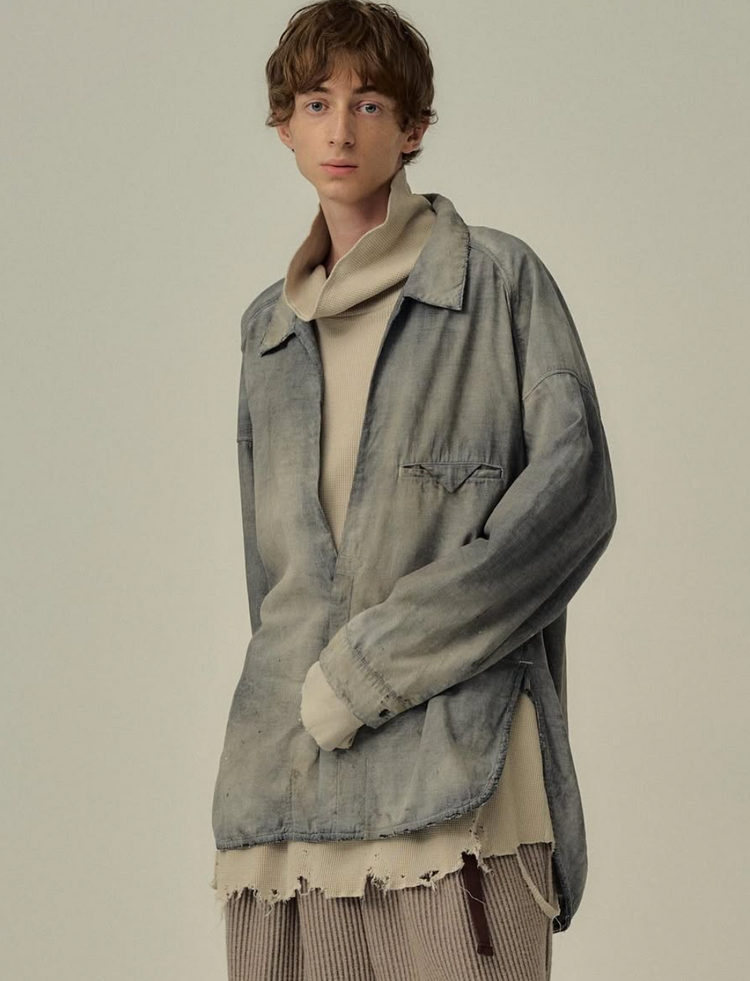 ANCELLM AGING CHAMBRAY LONG SHIRT