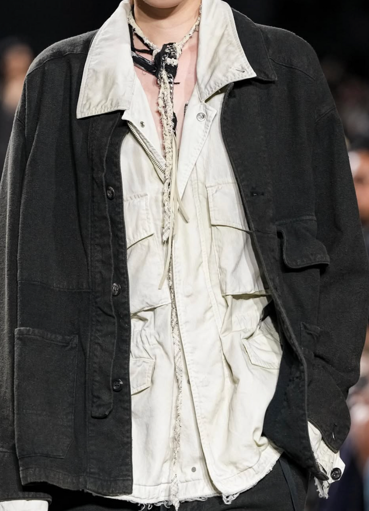 衿を立てたり、開いたり、ウエストでマークしたりと、