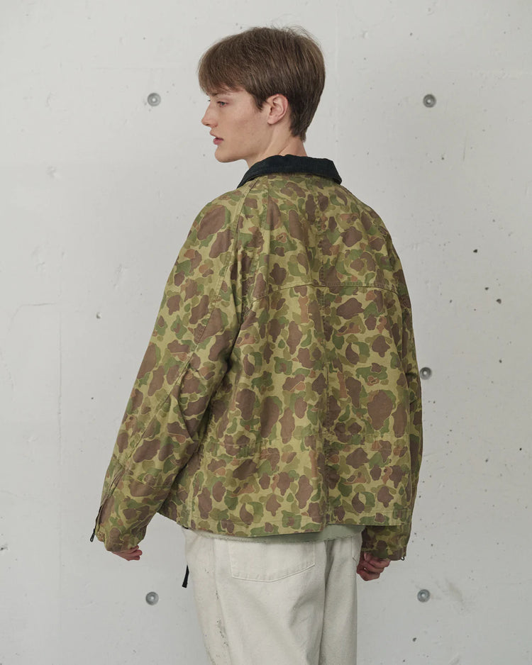 VINTAGEのミリタリーから、一周回って新鮮さを感じたアメリカのダックハンターとドイツのレインドロップを採用。加工によってい色の濃度を落とし、同等程度の濃度になるまで再び色を重ねることで奥行を持たせています。