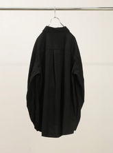 背面に取り付けた大きなボックスプリーツが立体的なシルエットを描き、陰影の効いたドレープが浮かび上がります。たっぷりとした生地分量と心地良い重みから、羽織りのようにもお使い頂ける設計としております。
