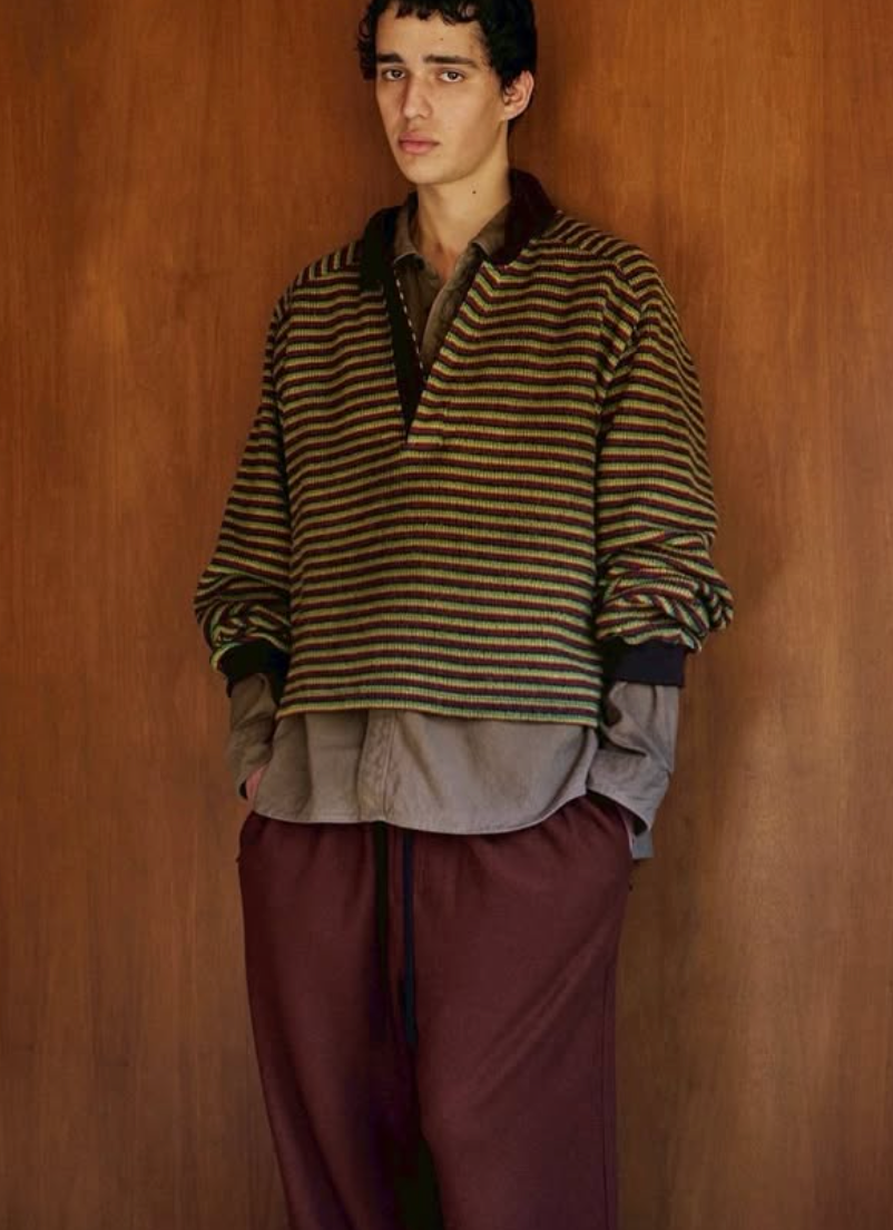 ANCELLM WOOL BORDER SKIPPER SHIRT