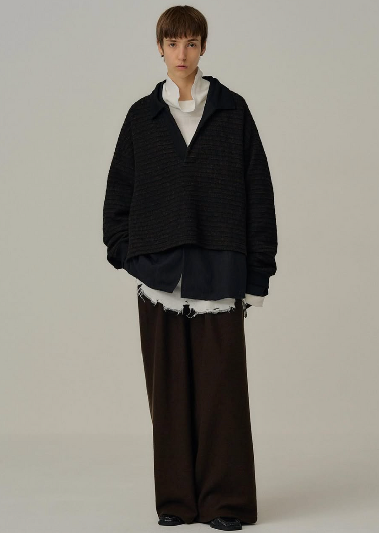 ANCELLM WOOL BORDER SKIPPER SHIRT