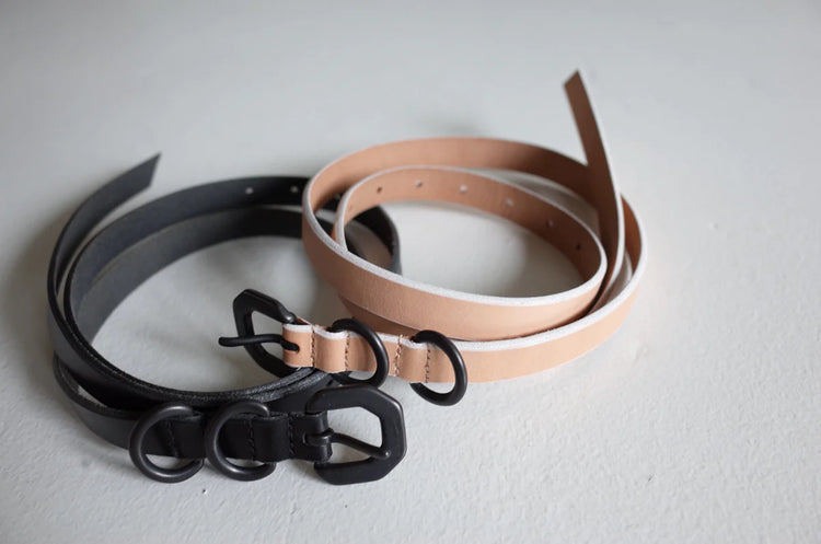 ダブルリング仕様を採用したナロータイプのレザーベルトです。