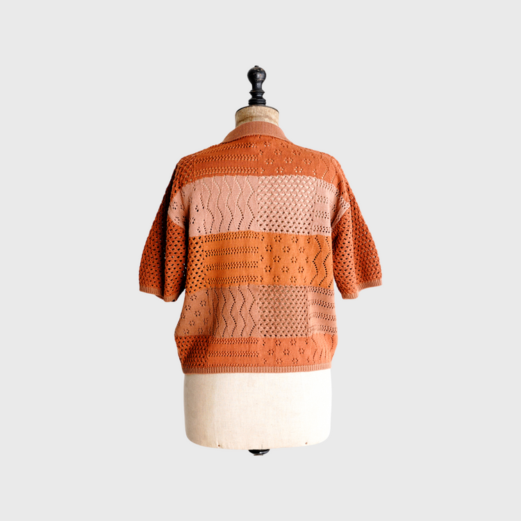 綿100%の糸でデザインしたジップアップ仕様のポロニット。
