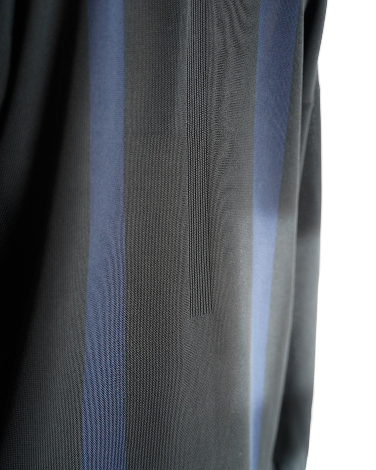 ボックスシルエットのロングスリーブシャツです。大胆なストライプを配したゆとりのある身頃が、現代的で洗練された雰囲気を演出しています。
