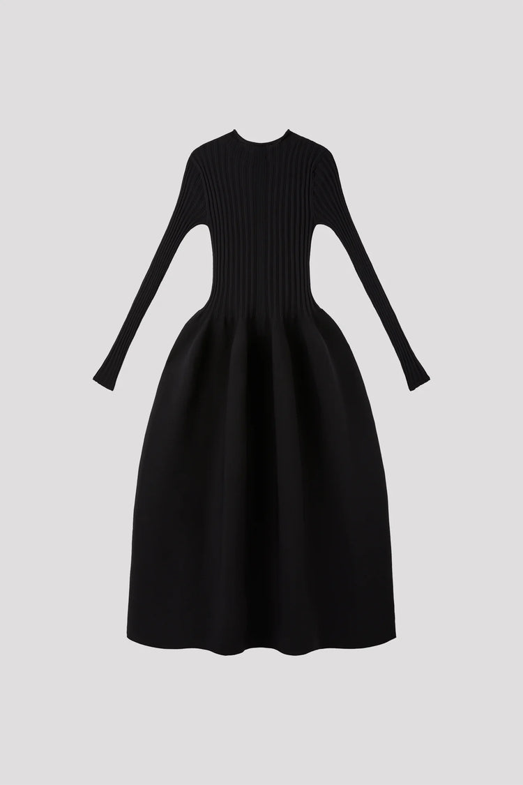 CFCLを象徴するPOTTERYシリーズのロングスリーブドレス。コンピュータープログラミングによって作られたボリューム感のある立体的なフォルムが特徴です。あらゆるオケージョンに対応できるシンプルなデザインで、縫代がなく、ストレッチ性に優れ、快適な着心地です。