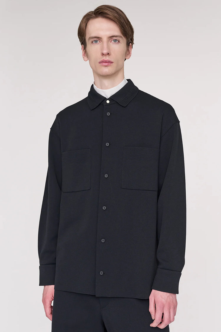 ミラノリブによる柔らかなハリ感と軽やかさが特徴のシャツ。襟やポケット、ショルダーにピンタックを施したミニマルなデザインとなっています。第一ボタン、カフスボタンにはロゴ入りのドットボタンを使用し、アクセントを効かせています。