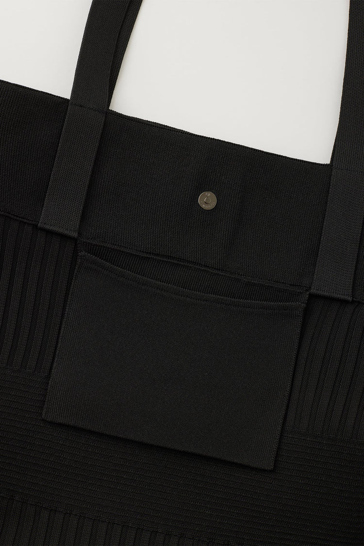 ピンタックとリブを組み合わせたユニークなシルエットのトートバッグ。A4サイズのノートパソコンなどを持ち運ぶことを想定したサイズで、通勤や通学などにも適した程よい大きさです。内側には小さいポケット、開閉口にはマグネットボタンが付いています。