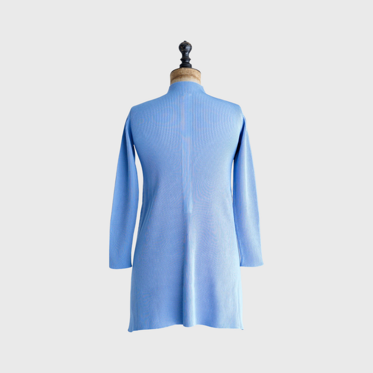 タイトフィットなAラインのロングスリーブチュニック。一切の切り替えを排除する事でシャープな印象を与えつつ、ウェストから緩やかなフレアがリラックス感を演出します。両サイドのスリットで、コーディネートの幅が広がる一着です。