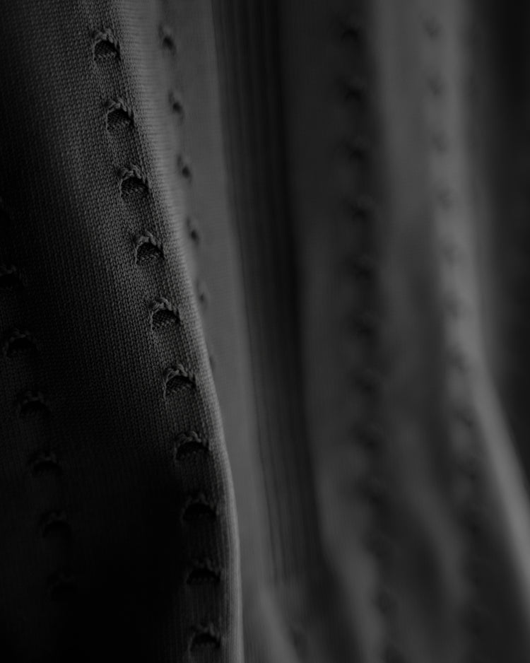 平面的でたっぷりとした身幅で、袖口にはタイトな2段階リブを配し、ボリューム感のあるパフスリーブを作り出しました。