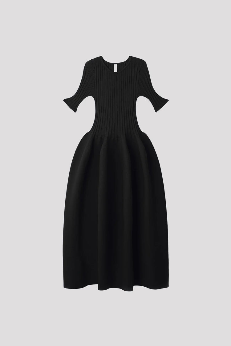 CFCLを象徴するPOTTERYシリーズのフレアドレスです。壺の様な丸みのあるシルエットからPOTTERY(陶器)と名付けました。着心地よく、シンプルで、あらゆるオケージョンに対応できるデザインです。コンピュータプログラミングによって作られたボリューム感のある立体的なフォルムが特徴です。ストレッチ性に優れ、縫代がなく、快適にご着用頂けます。