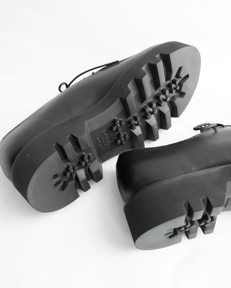 伝統的なチロリアンシューズをミニマルにアレンジ。敢えてボリュームを持たせたラストとモカシン縫い、アウトソールの重厚なラインが特徴。ソールには軽量かつ屈曲性に優れたイタリアVibram社製の“TWEETY”ソールを採用。