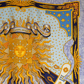 デザイン毎にデッサンをおこし、一色に対して版を作成、色を決定し、職人により丁寧に染色作業が行われ、仕上げの縁取りまで手縫いで作られているHERMESのカレ。