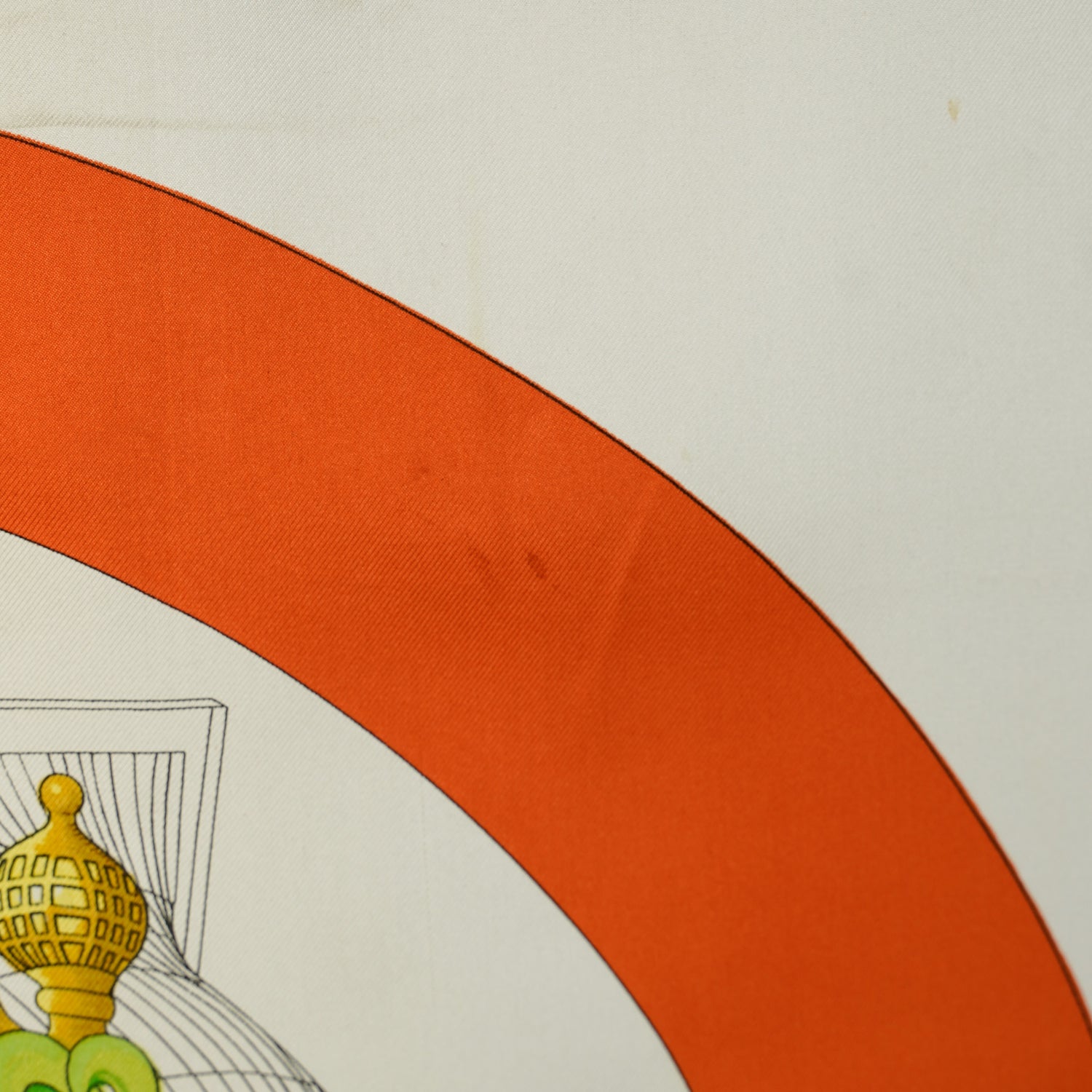 デザイン毎にデッサンをおこし、一色に対して版を作成、色を決定し、職人により丁寧に染色作業が行われ、仕上げの縁取りまで手縫いで作られているHERMESのカレ。