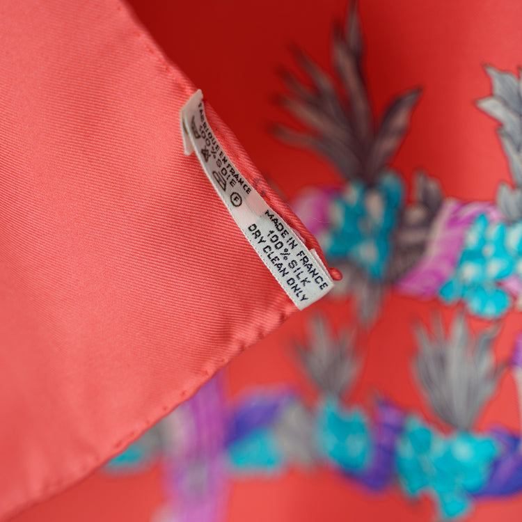 デザイン毎にデッサンをおこし、一色に対して版を作成、色を決定し、職人により丁寧に染色作業が行われ、仕上げの縁取りまで手縫いで作られているHERMESのカレ。