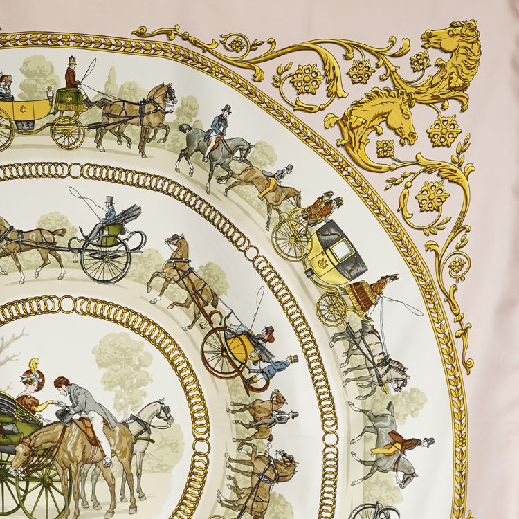 HERMESの歴史がスタートしたのは1837年。そこから実に1世紀の時を経て1937年にカレが誕生しました。カレ90はその歴史がスタートした初期から続く90cm四方のシルクスカーフ。一枚一枚にタイトルが付けられているのもカレの伝統。