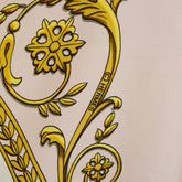 カレ一枚に対し平均25色が使われており、多いものでは40色以上の色彩がこの90cm四方に描かれ、一色毎に版を作り、プリントではなく染色の作業を行なっております。