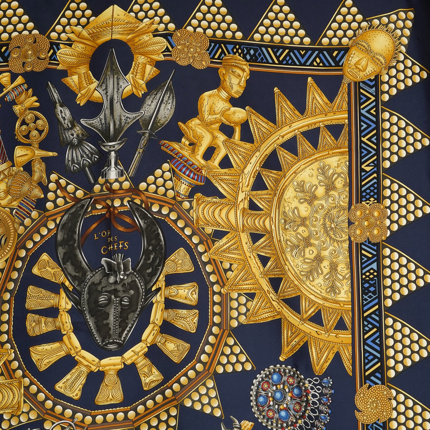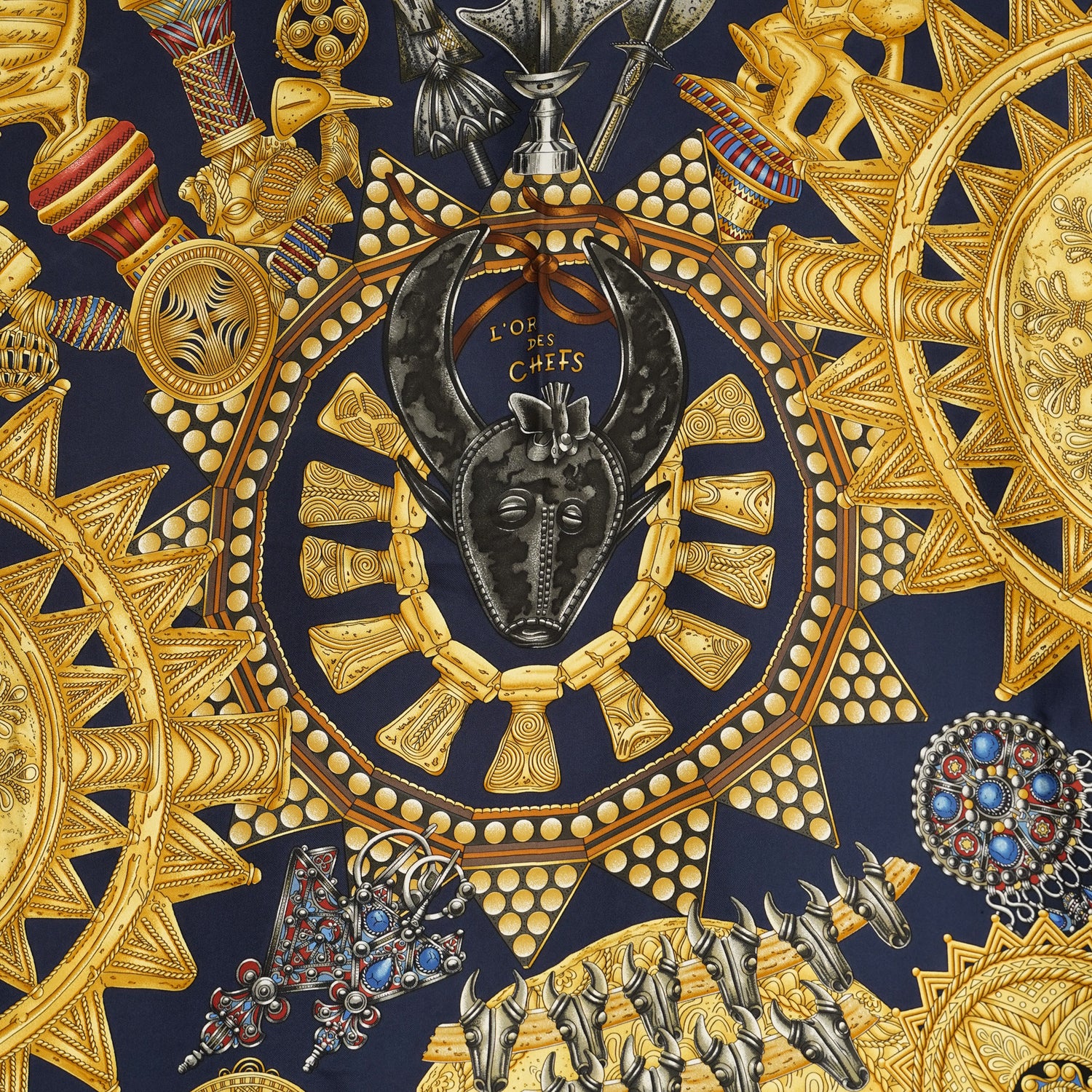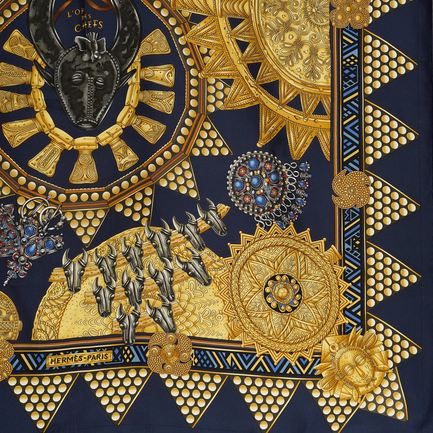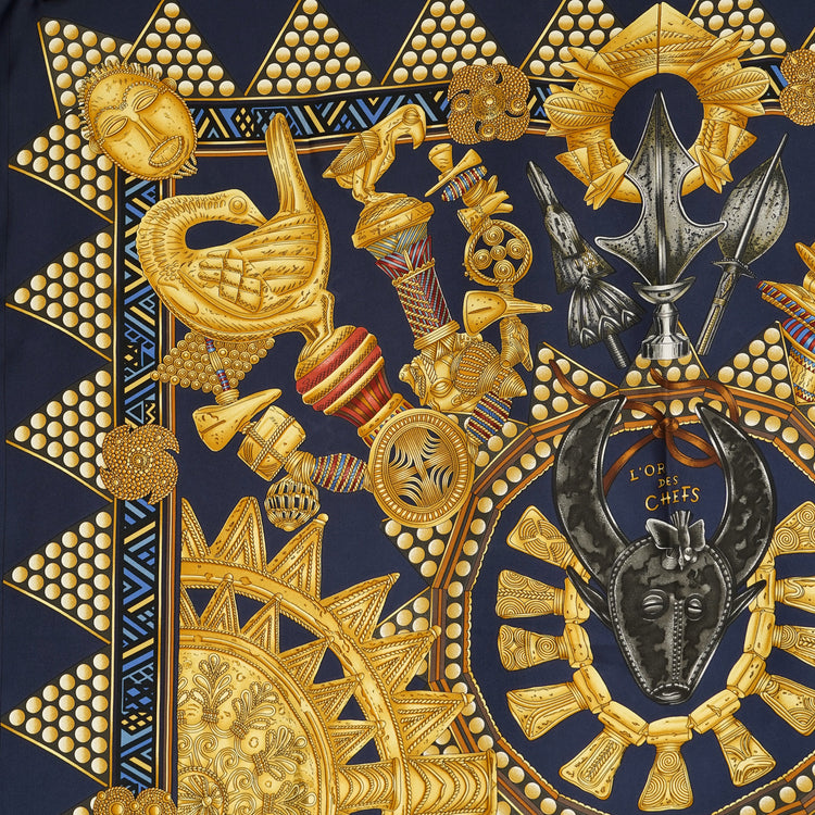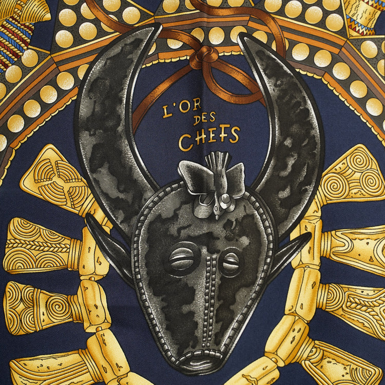 HERMES カレ90 "L'OR DES CHEFS" 1990's NAVY