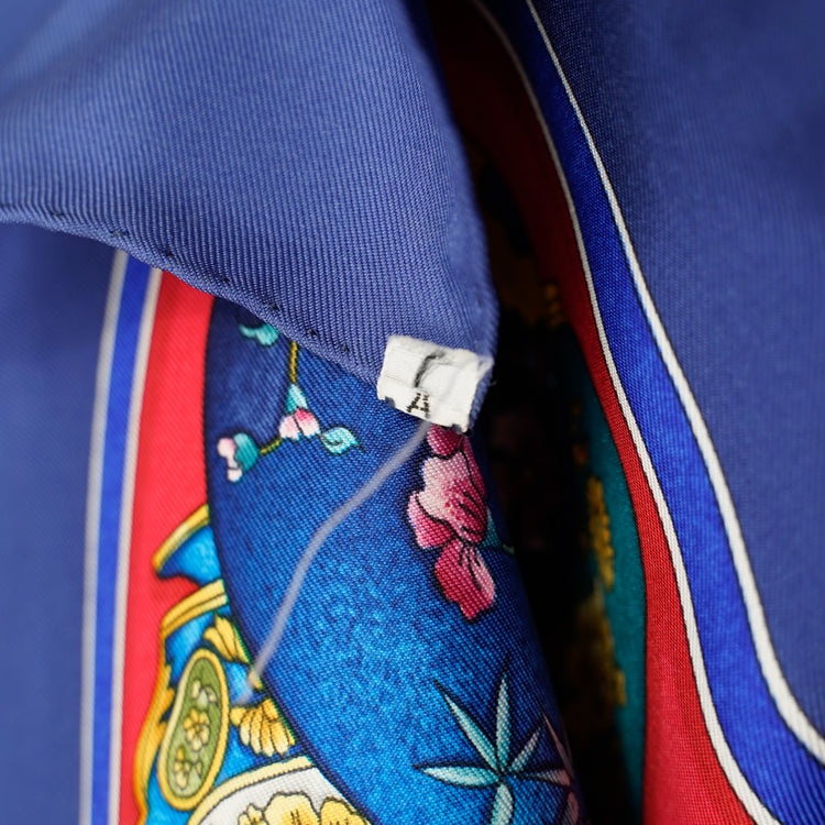 デザイン毎にデッサンをおこし、一色に対して版を作成、色を決定し、職人により丁寧に染色作業が行われ、仕上げの縁取りまで手縫いで作られているHERMESのカレ。