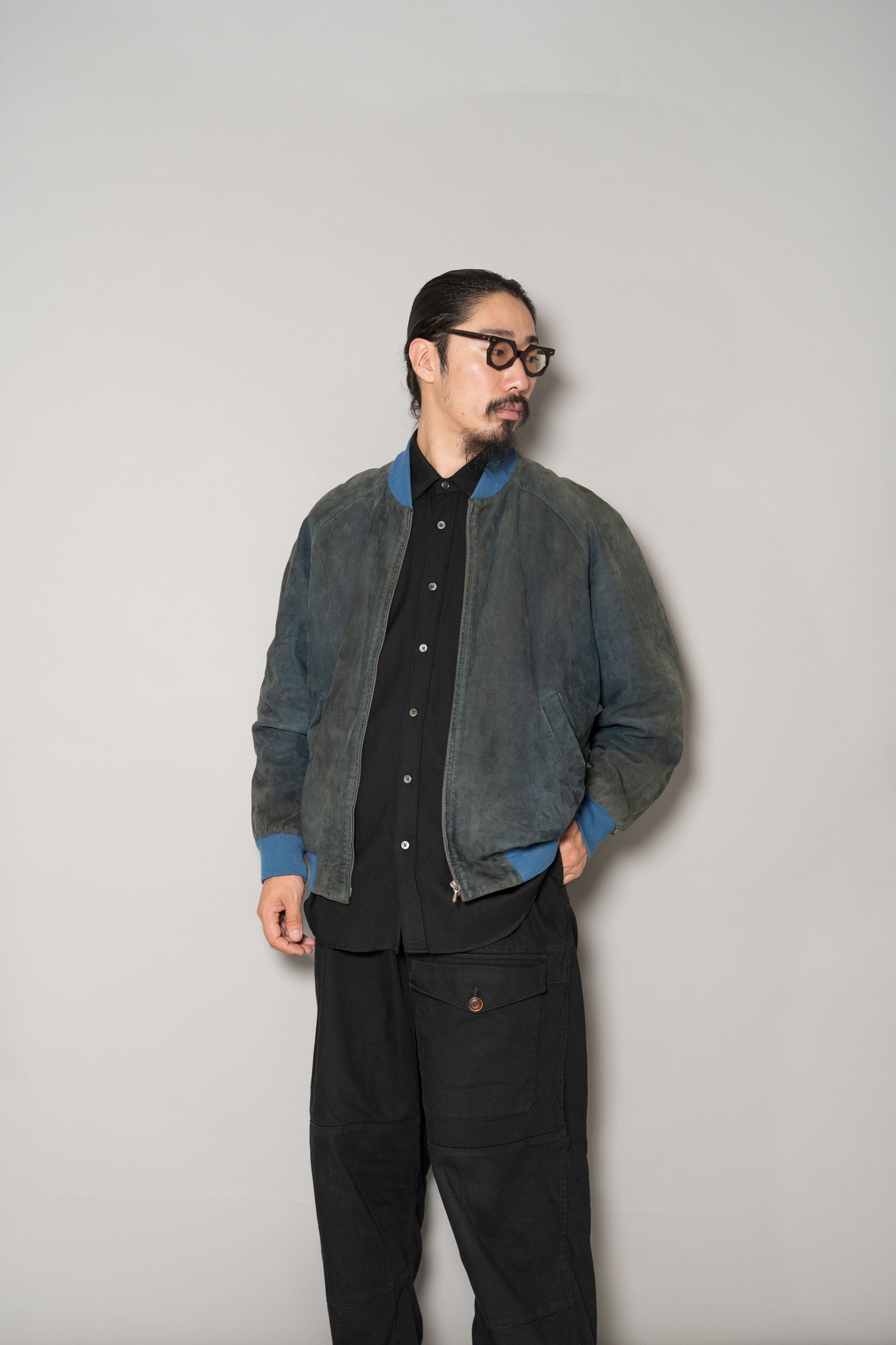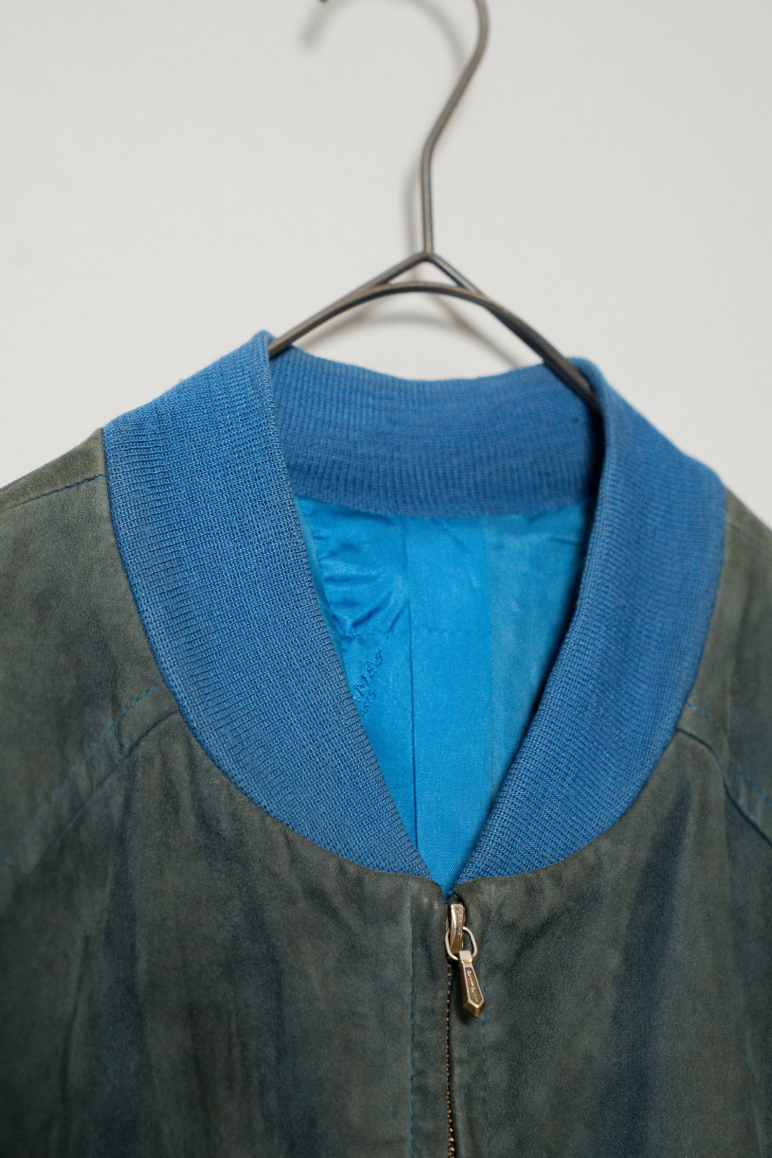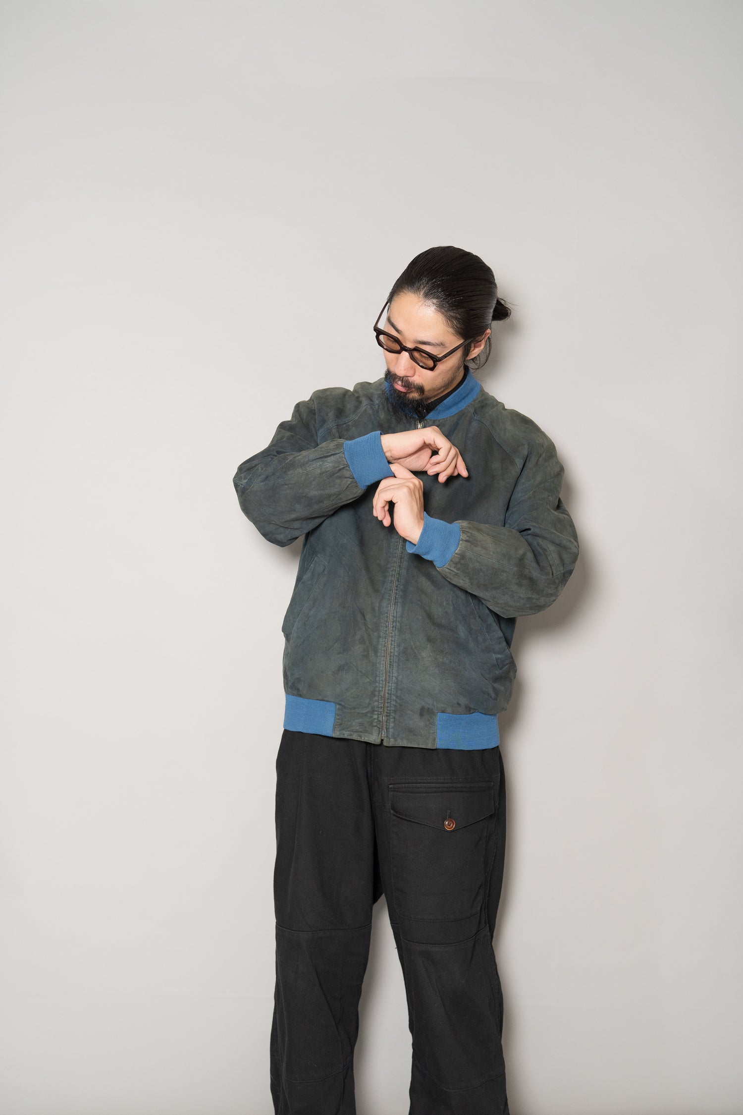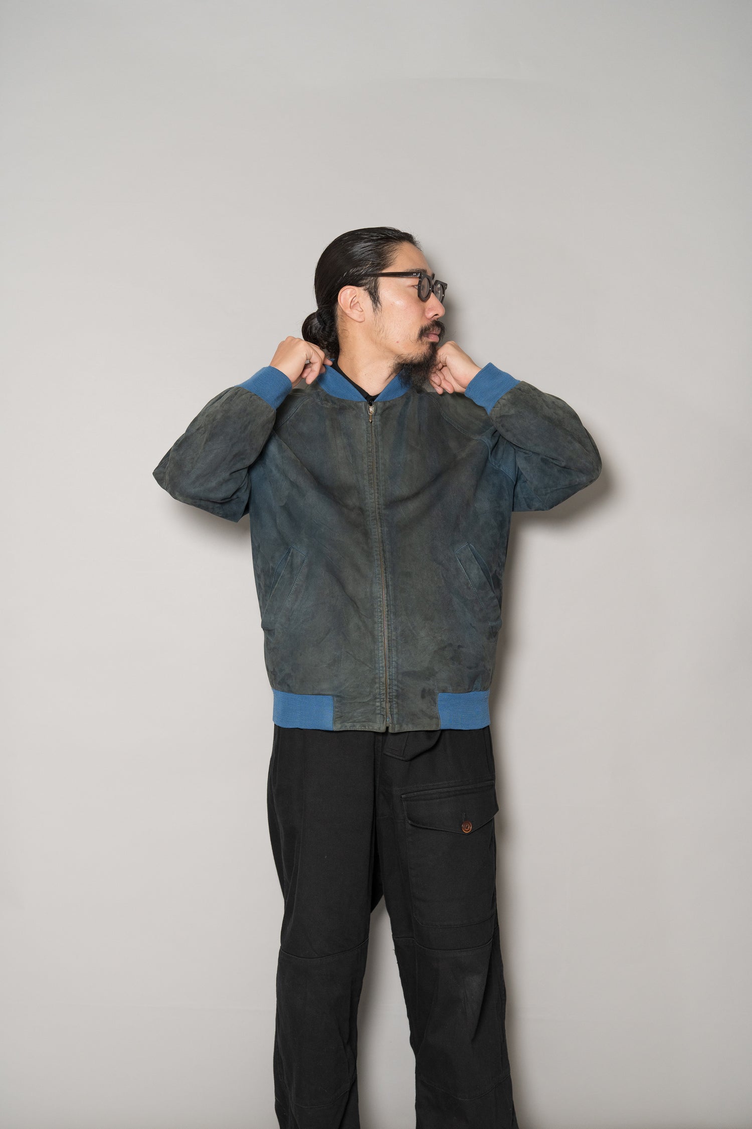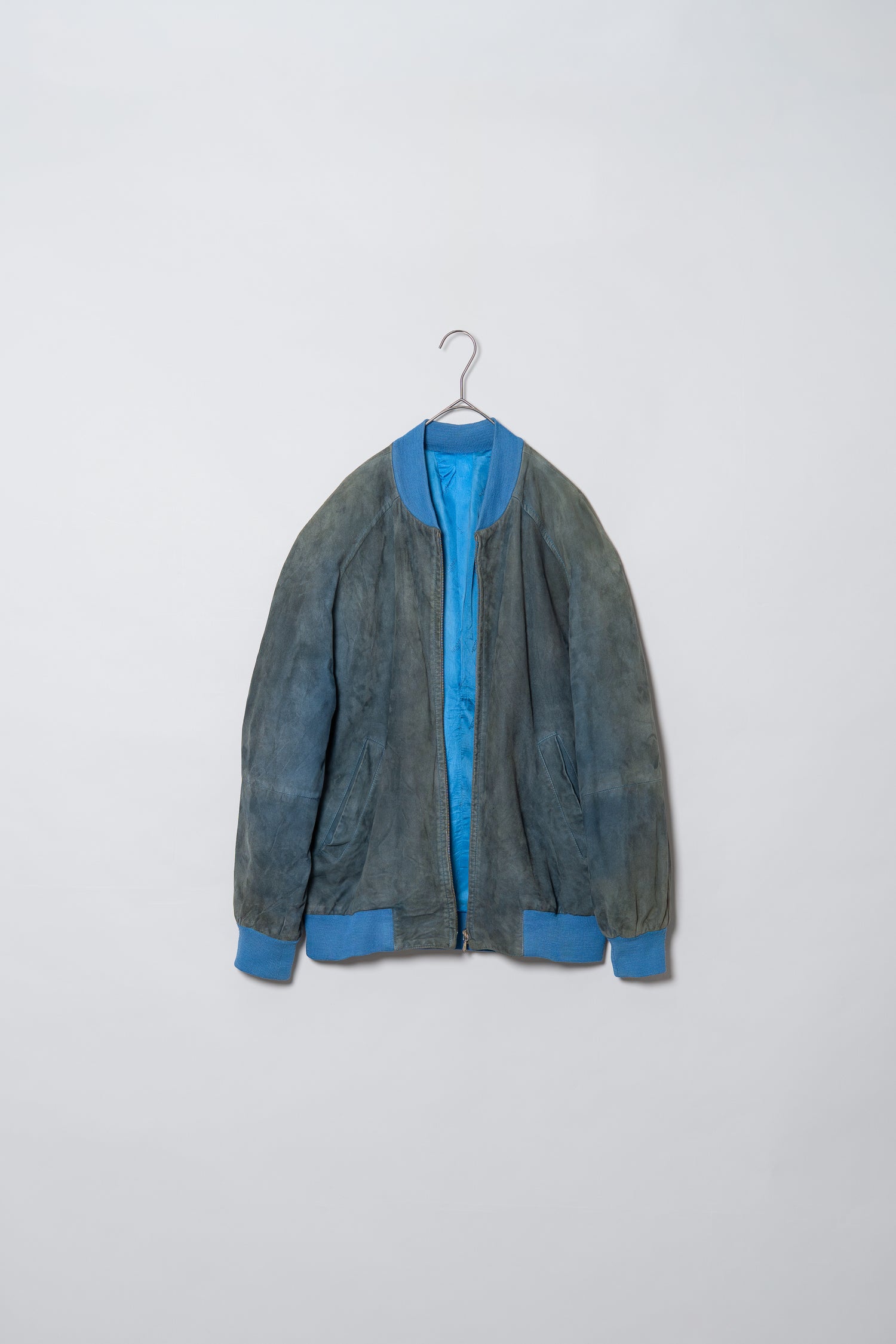 深みのあるブルーグレーの色調が印象的なこちらのブルゾンは、エルメスのアトリエが誇る最高峰のクラフツマンシップを感じさせる一着です。表地には柔らかく鞣されたラムスキンのスウェードレザーを採用し、着る人の身体に沿うように優しく馴染んでいきます。退色したような表情は、まるで時間をかけて自然に風合いが育ったかのような味わいを持ち、ビンテージならではの奥行きを感じさせます。表面のわずかなムラ感や陰影は、素材そのものが持つ生命力を映し出しており、ひとつとして同じ表情を持つものはありません。
