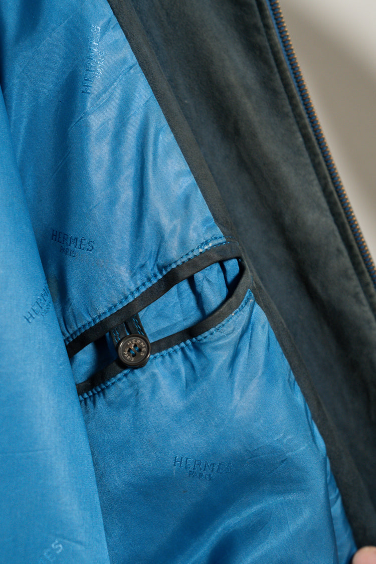 HERMES LAMBSKIN Suede Leather Zip Jacket