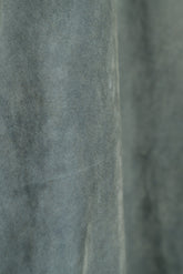 スタイリングにおいても汎用性が高く、インナーに白シャツやタートルネックを合わせれば上品なカジュアルに、Tシャツやデニムと合わせれば抜け感のあるラグジュアリーな装いに仕上がります。退色したブルーグレーは光の加減で表情を変え、屋内では深みのあるグレー、日差しの下では淡いブルーとして映えるため、季節を問わず着用していただけます。