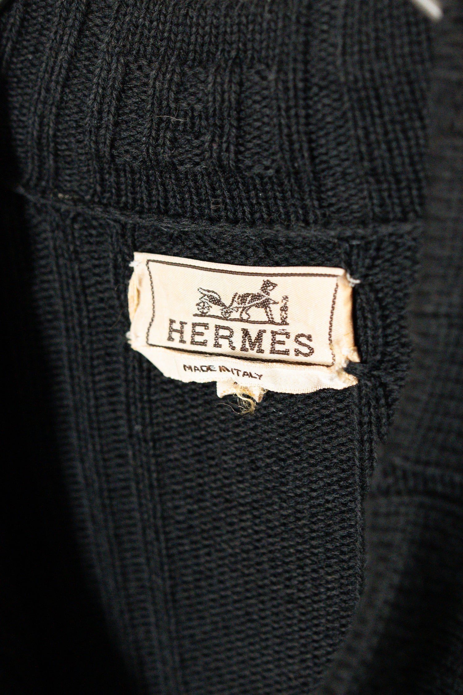 また、生産国がイタリアである点も重要です。エルメスは自社工房に加え、信頼のおけるヨーロッパの老舗工房で生産を行ってきましたが、イタリア製のニットは特に編みの技術と仕上げの美しさに定評があります。本作も縫製の精度、リブの立体感、襟元の作り込みなど、細部まで非常に丁寧に仕上げられており、量産品とは一線を画すクオリティです。