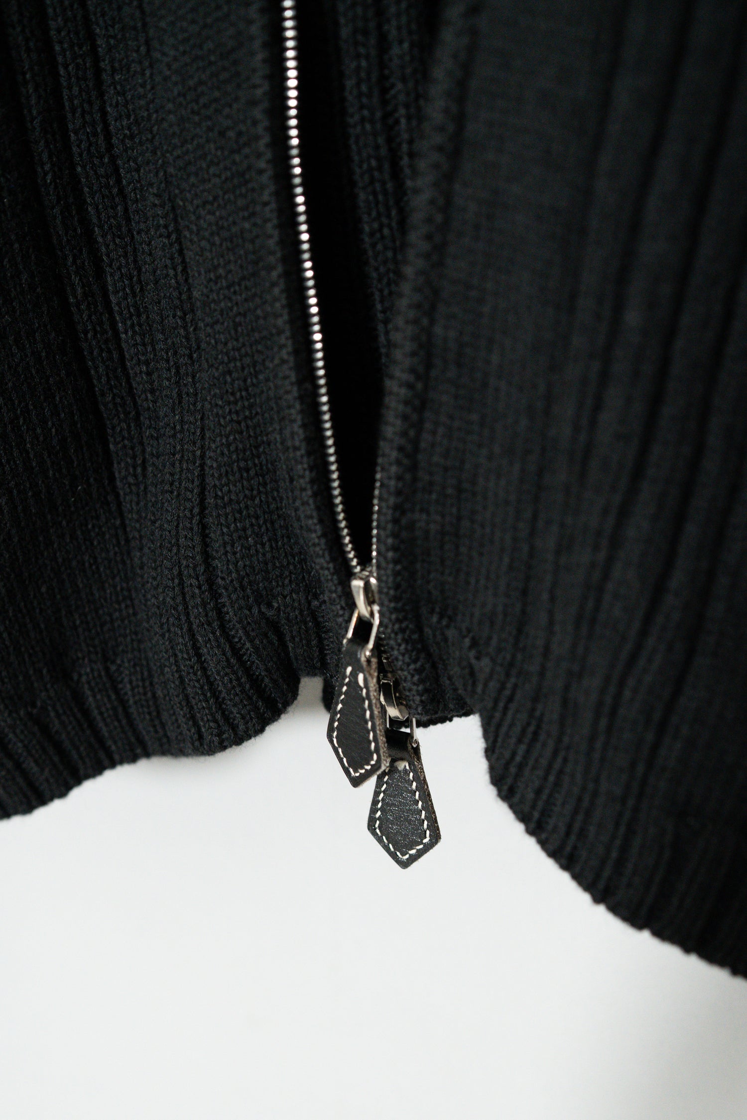 ジップにはレザータブがあしらわれており、金属パーツとのコントラストが極めて上品。実際の使用においても指がかかりやすく、グローブをしたままでも開閉しやすいという機能的理由を持ちながら、視覚的には明確に「エルメスらしさ」を主張するディテールです。この“機能と装飾の両立”こそが、他のドライバーズニットとは一線を画す部分と言えるでしょう。