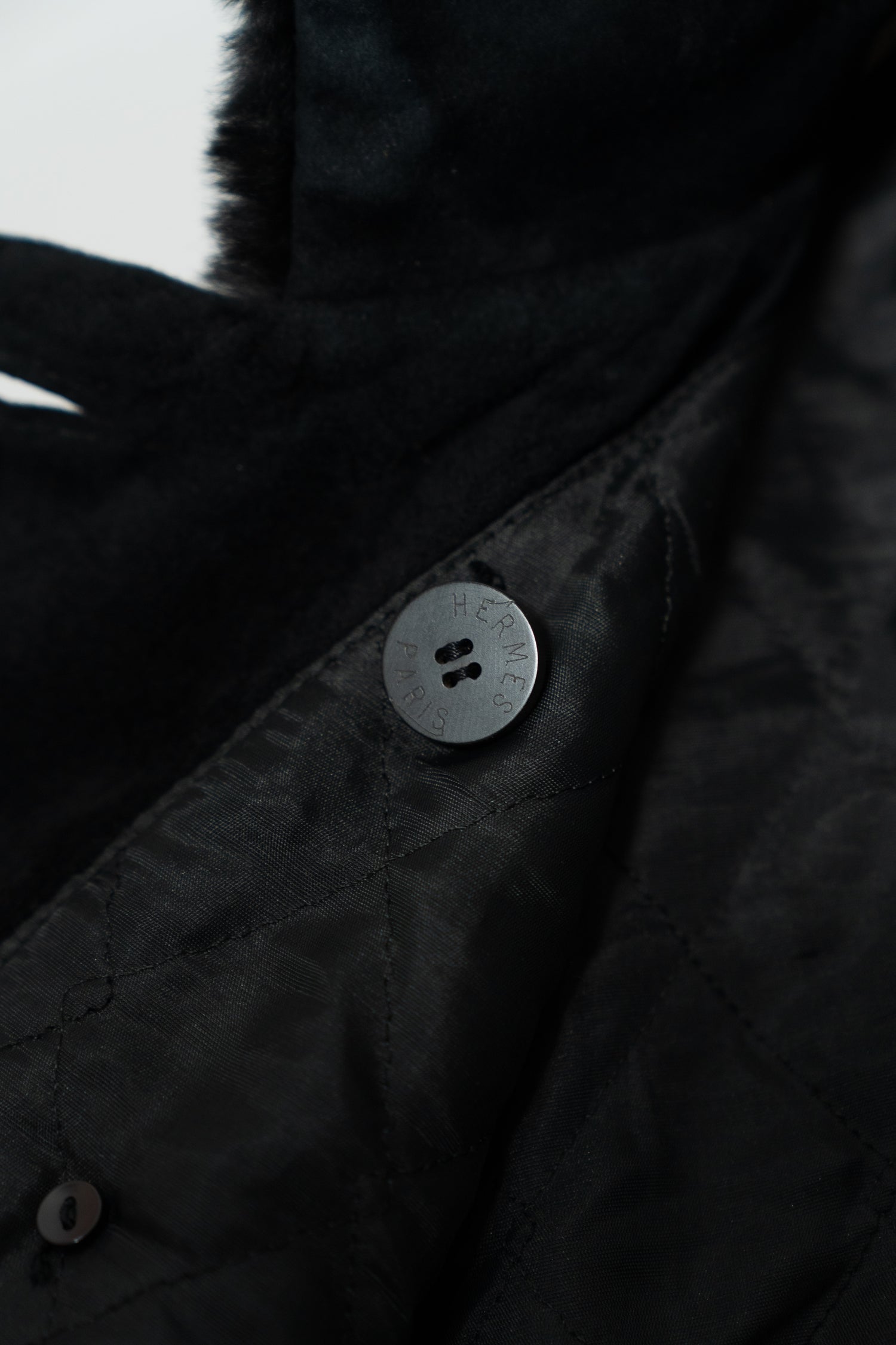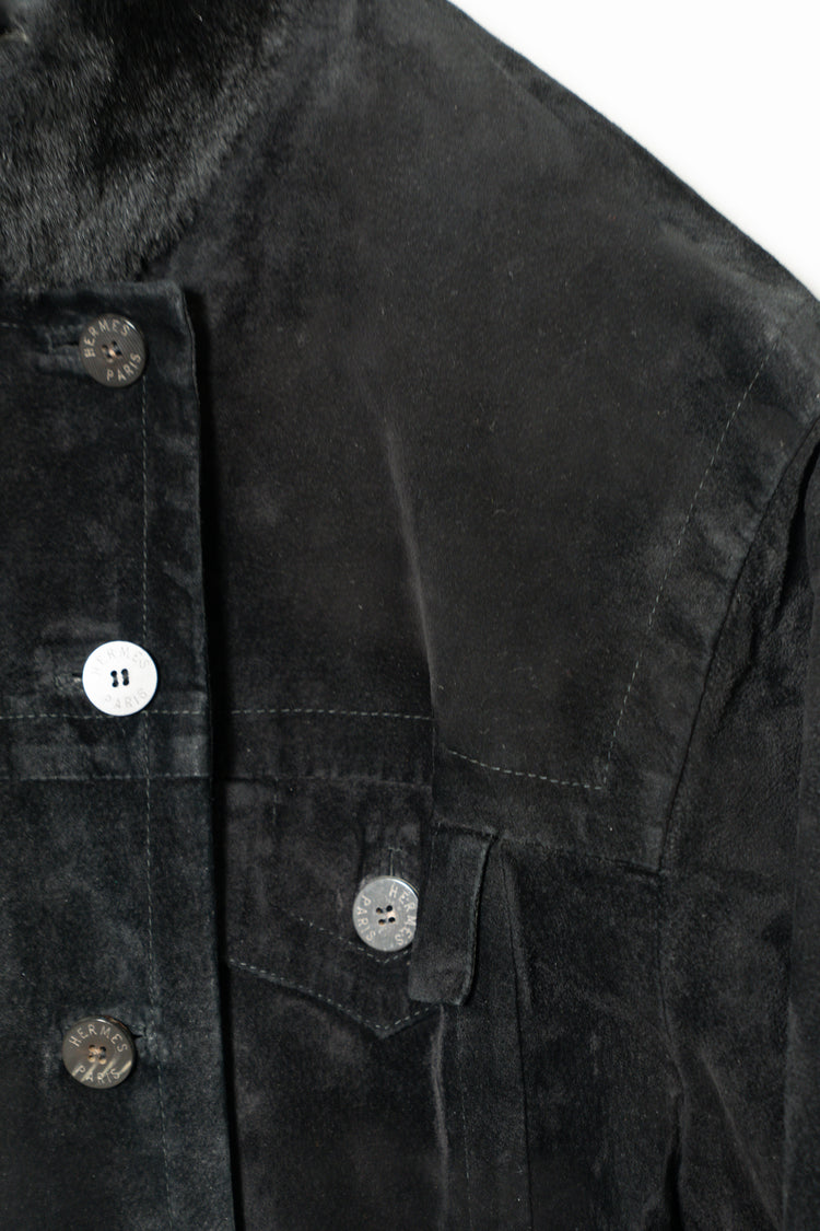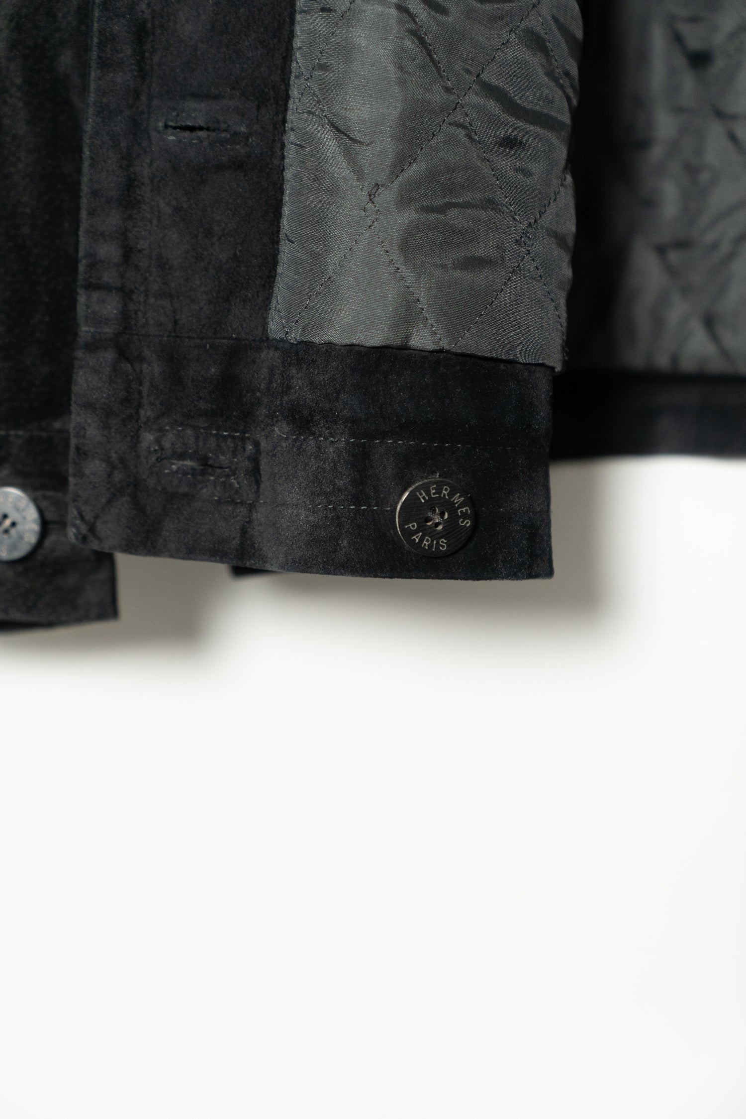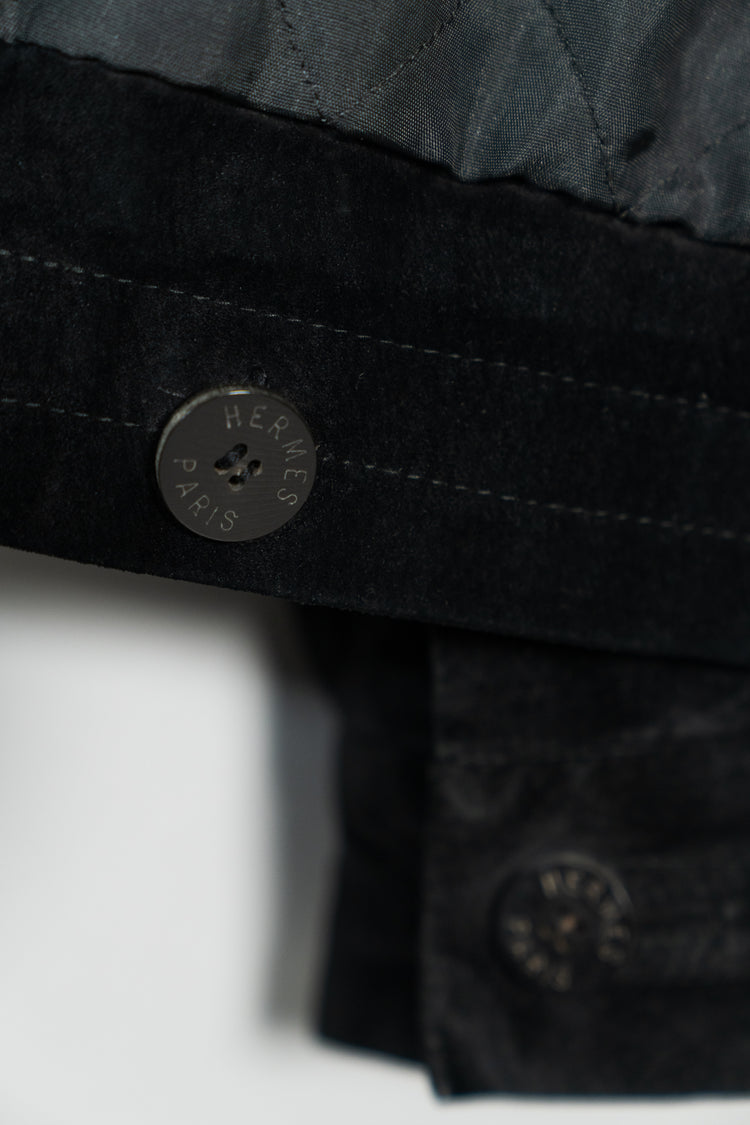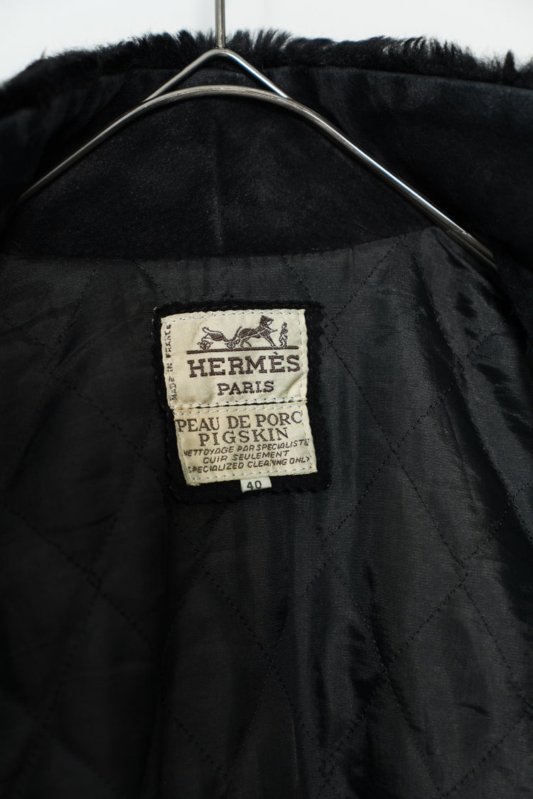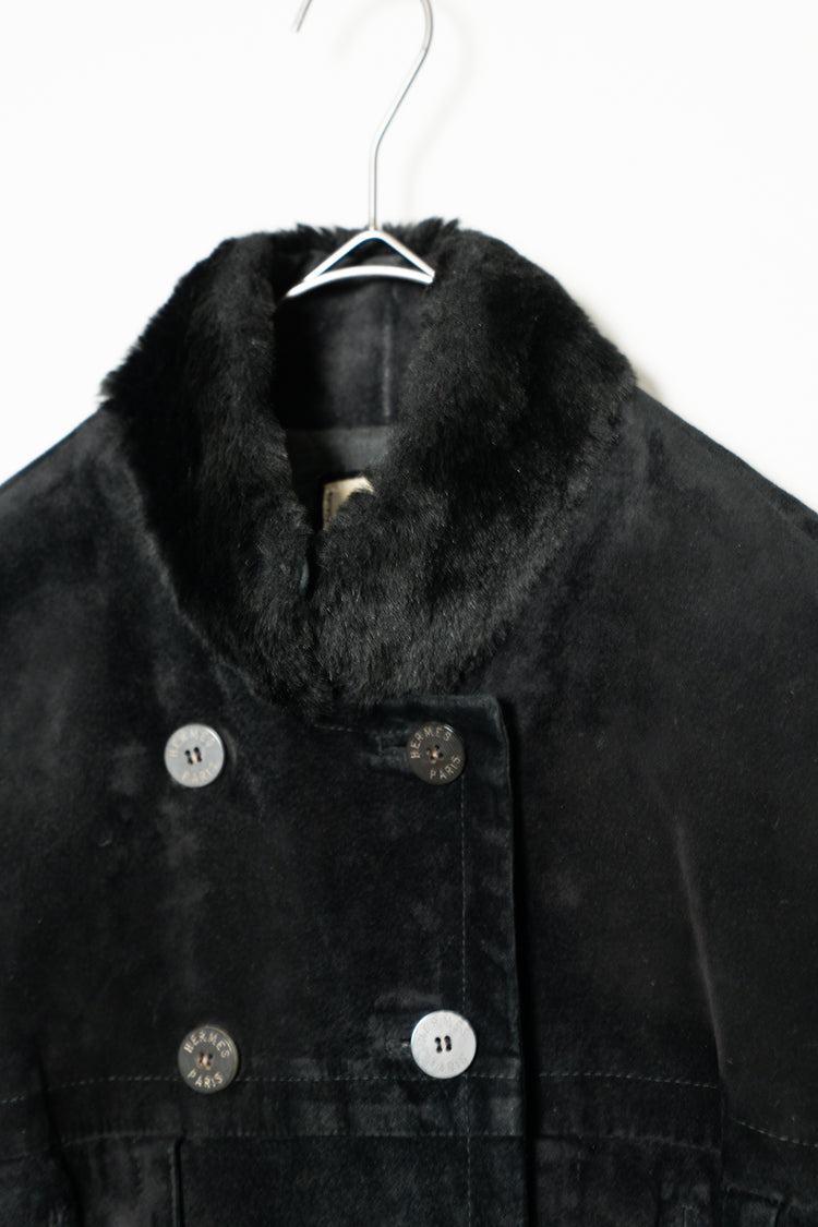 HERMES Pigskin Suede Double Breasted Jacket with quilting liner