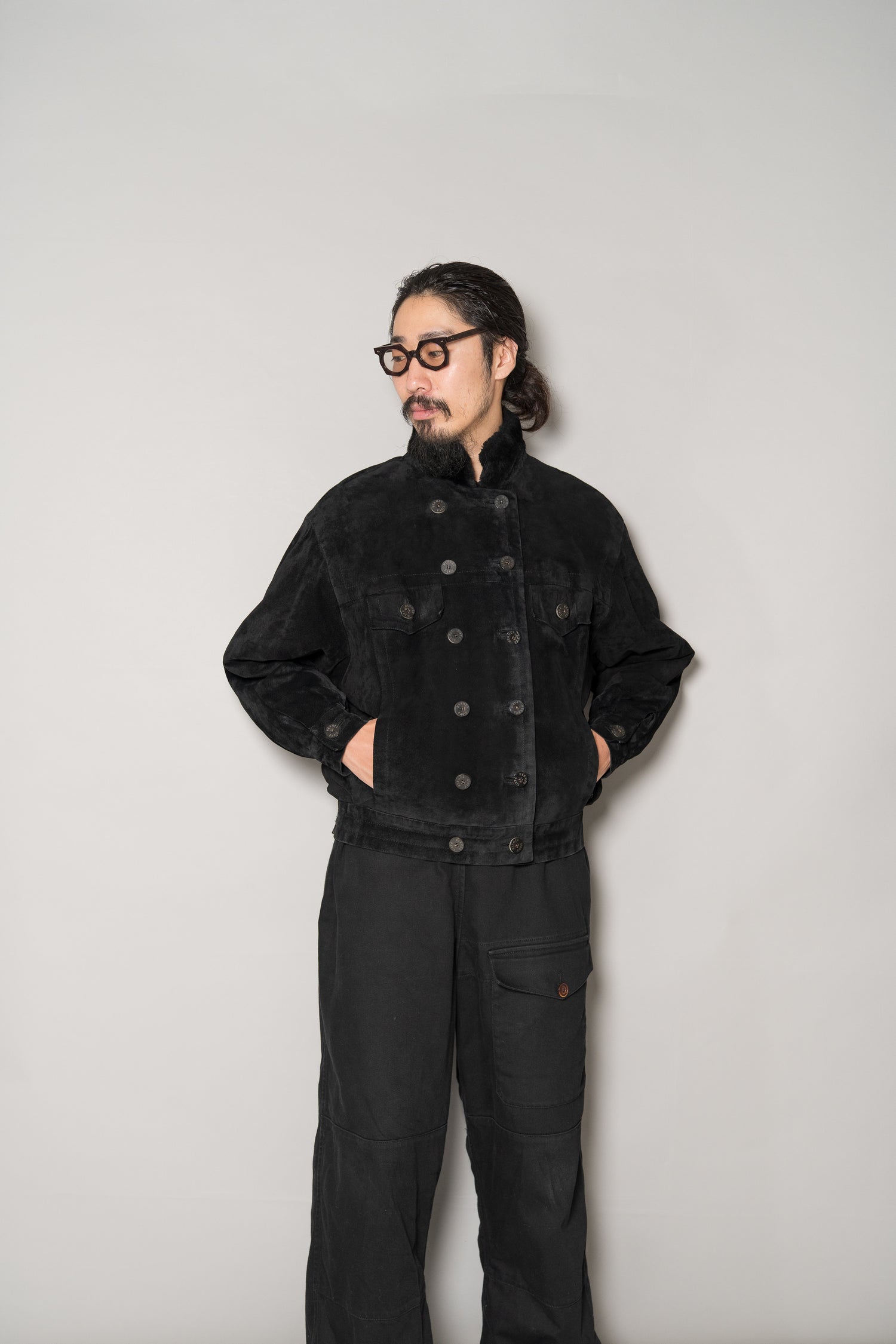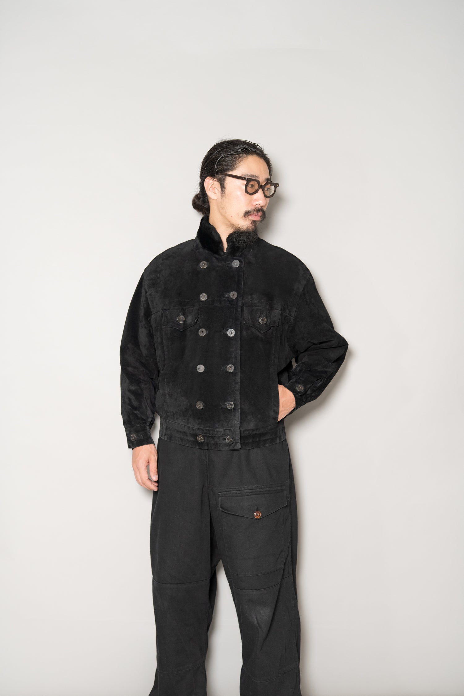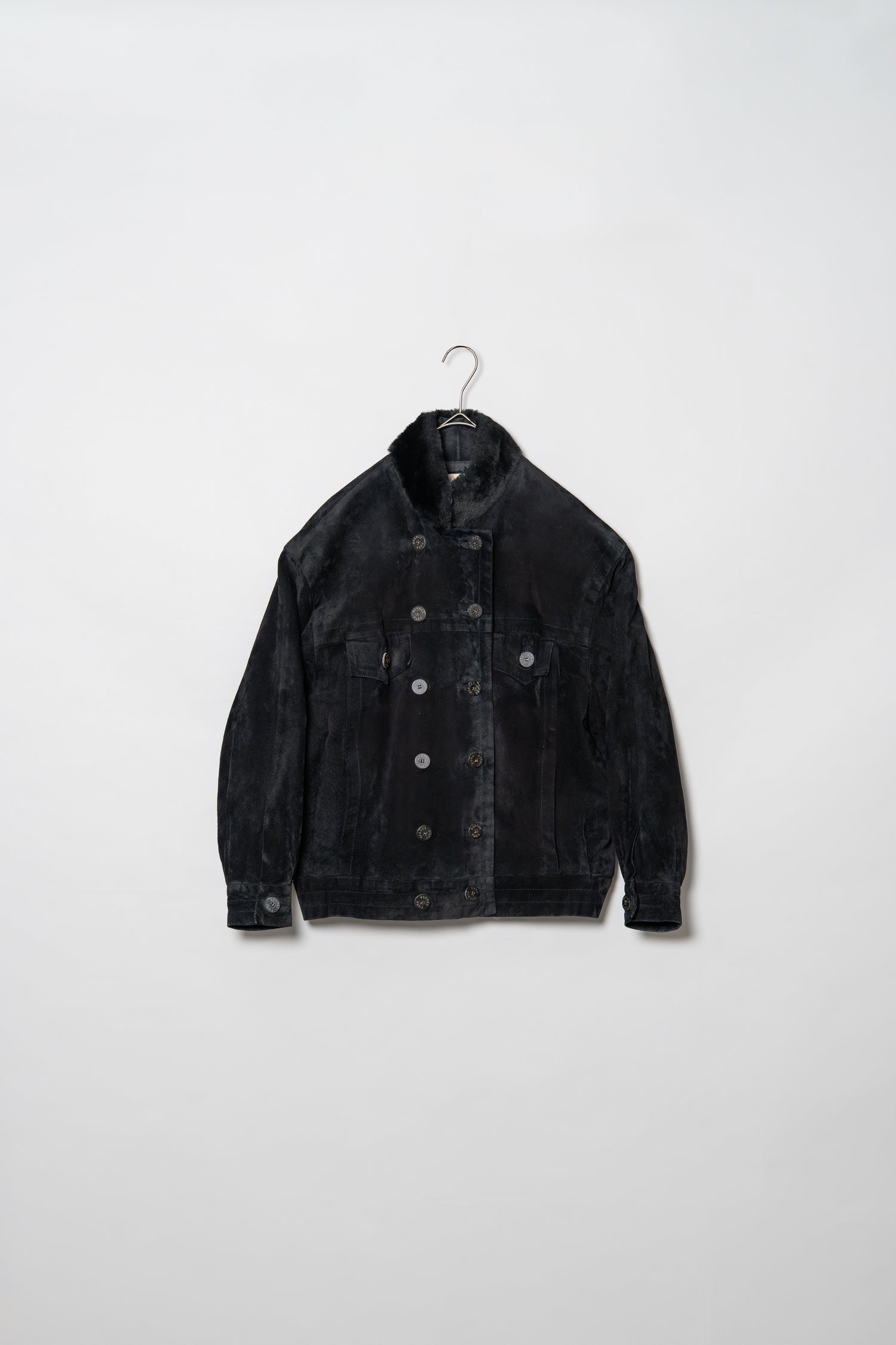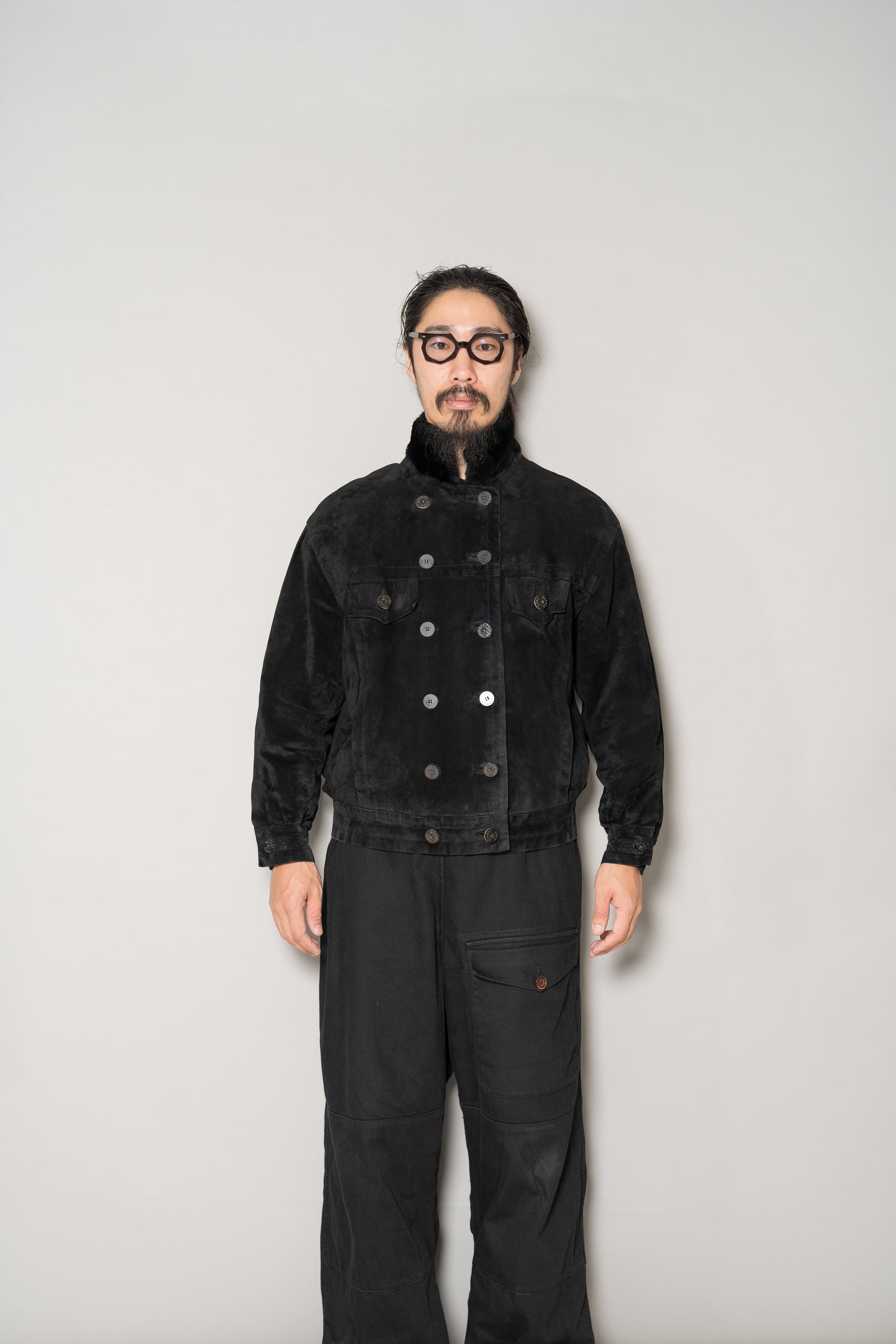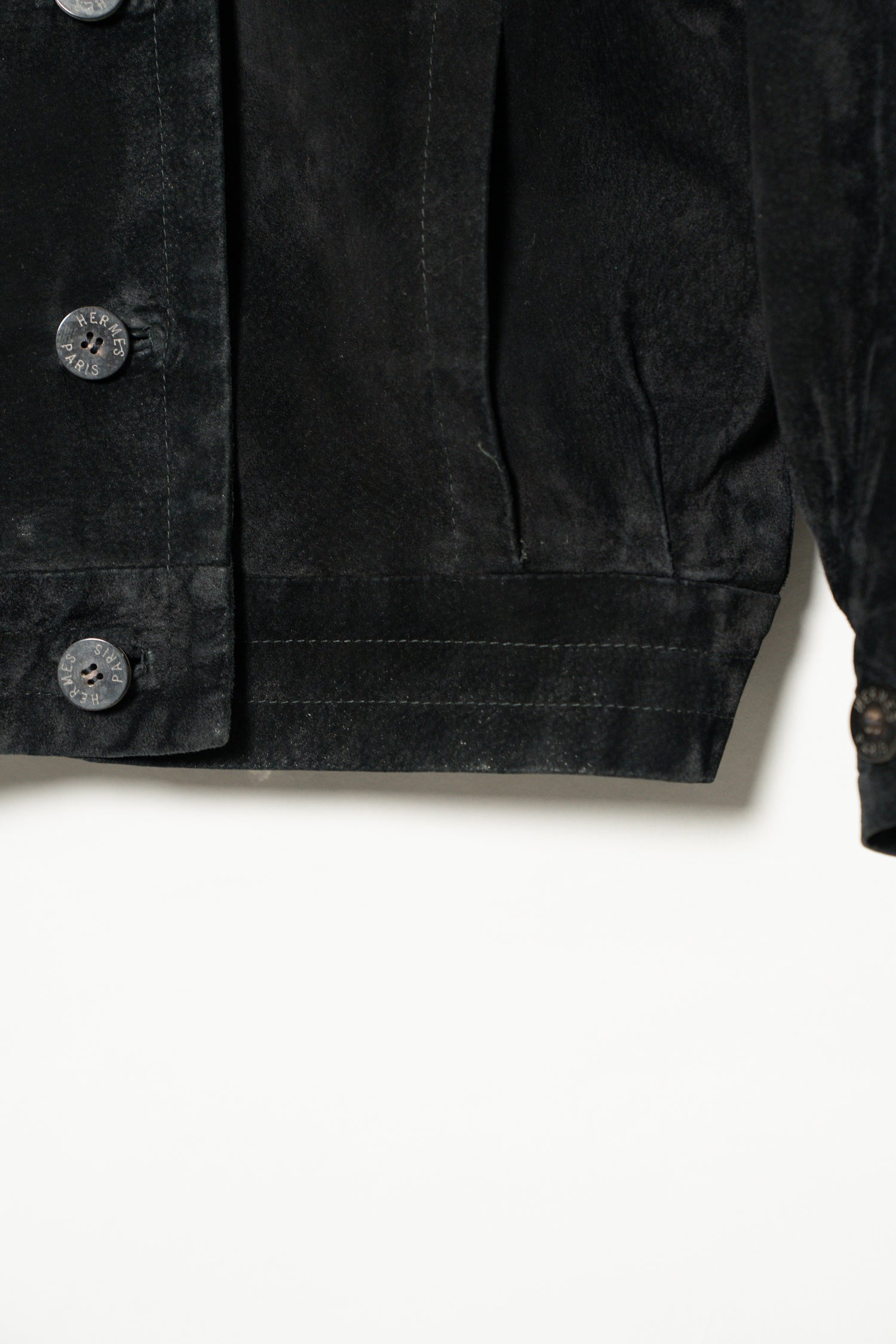 HERMES Pigskin Suede Double Breasted Jacket with quilting liner