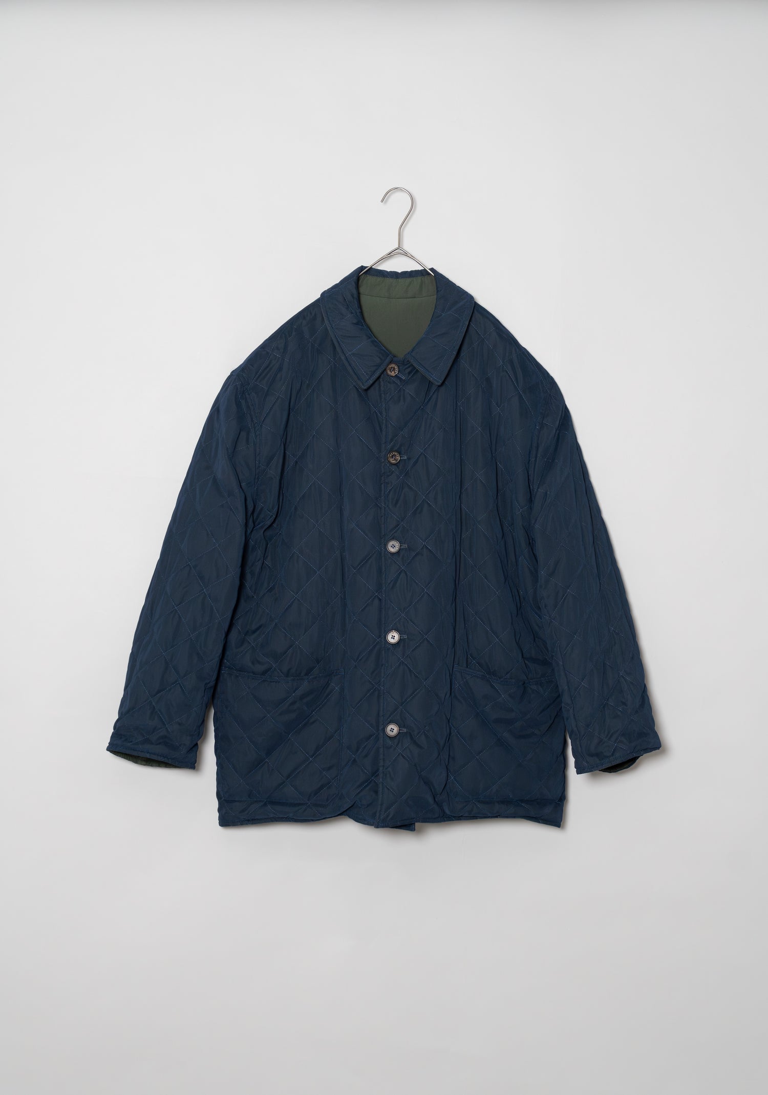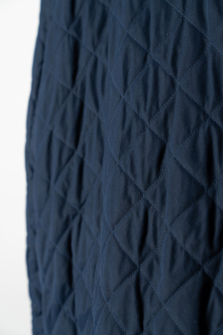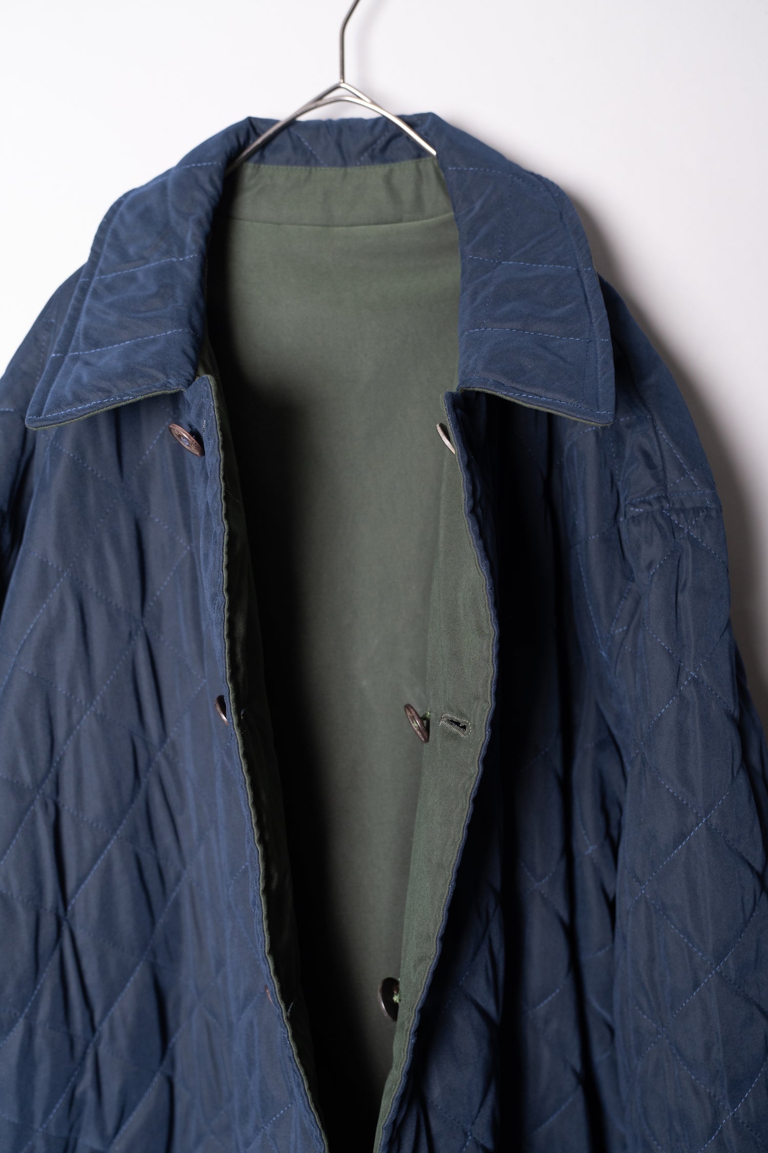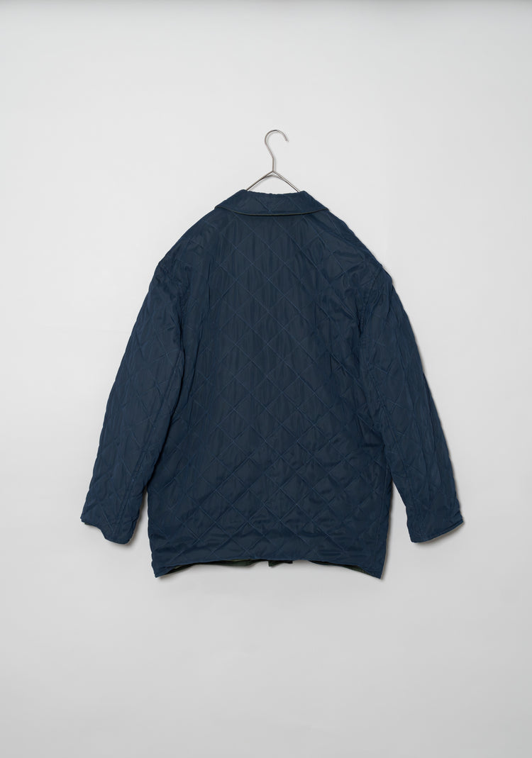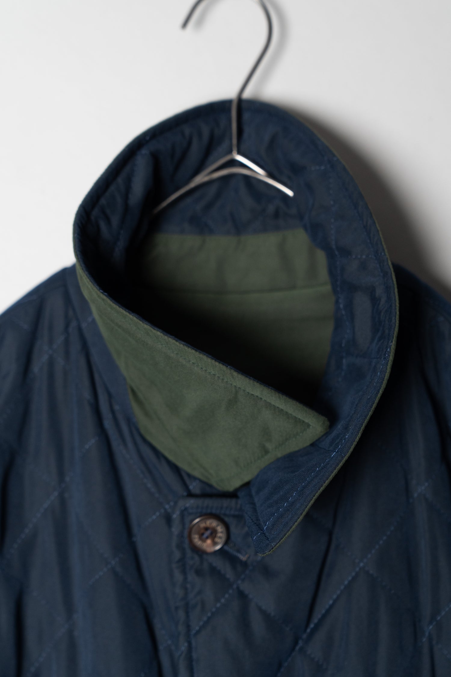ネイビーのキルティング面を表にすれば、知的で都会的なスタイルに。ビジネスシーンでのジャケットスタイルの上に羽織れば、軽やかながらも品格を保ちます。一方、カーキのプレーン面を表にすれば、よりカジュアルでアウトドアライクな印象に。デニムやチノ、あるいはブーツと合わせることで、アクティブなシーンにも溶け込みます。