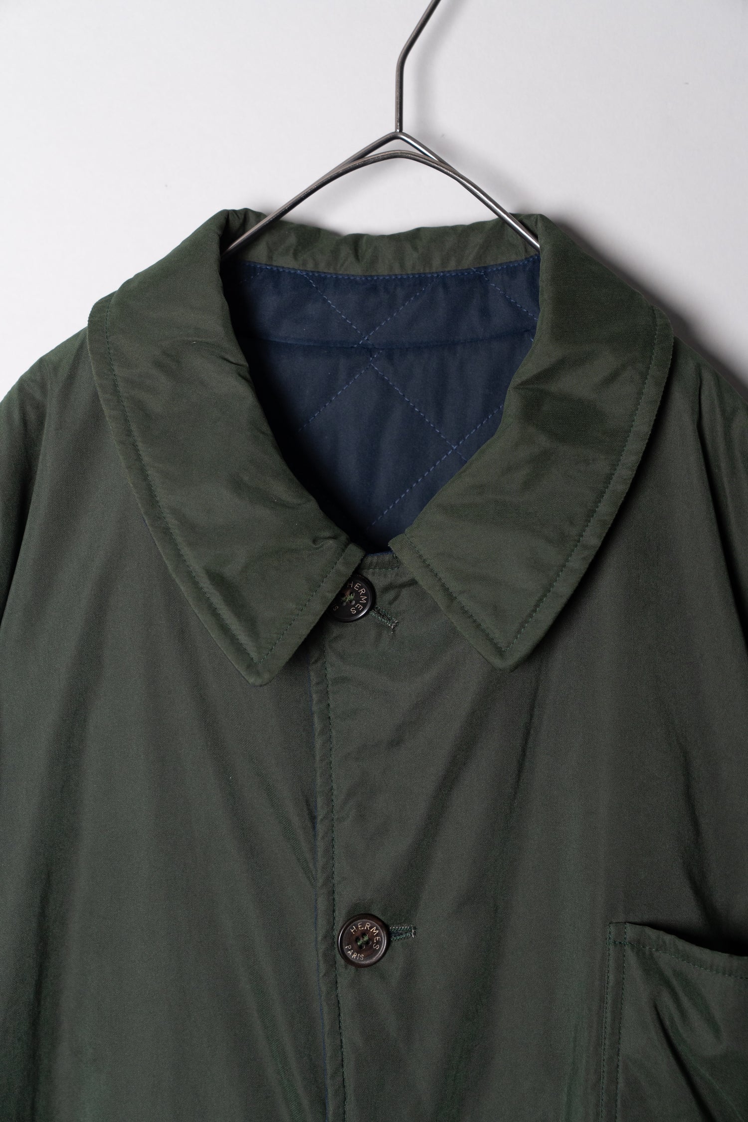 その思想を体現する一着が、この HERMÈS Reversible Quilt Paddock Half Coat です。クラシックな佇まいの中に、エルメスならではの革新性と実用性が込められた、真にタイムレスなアイテムといえるでしょう。