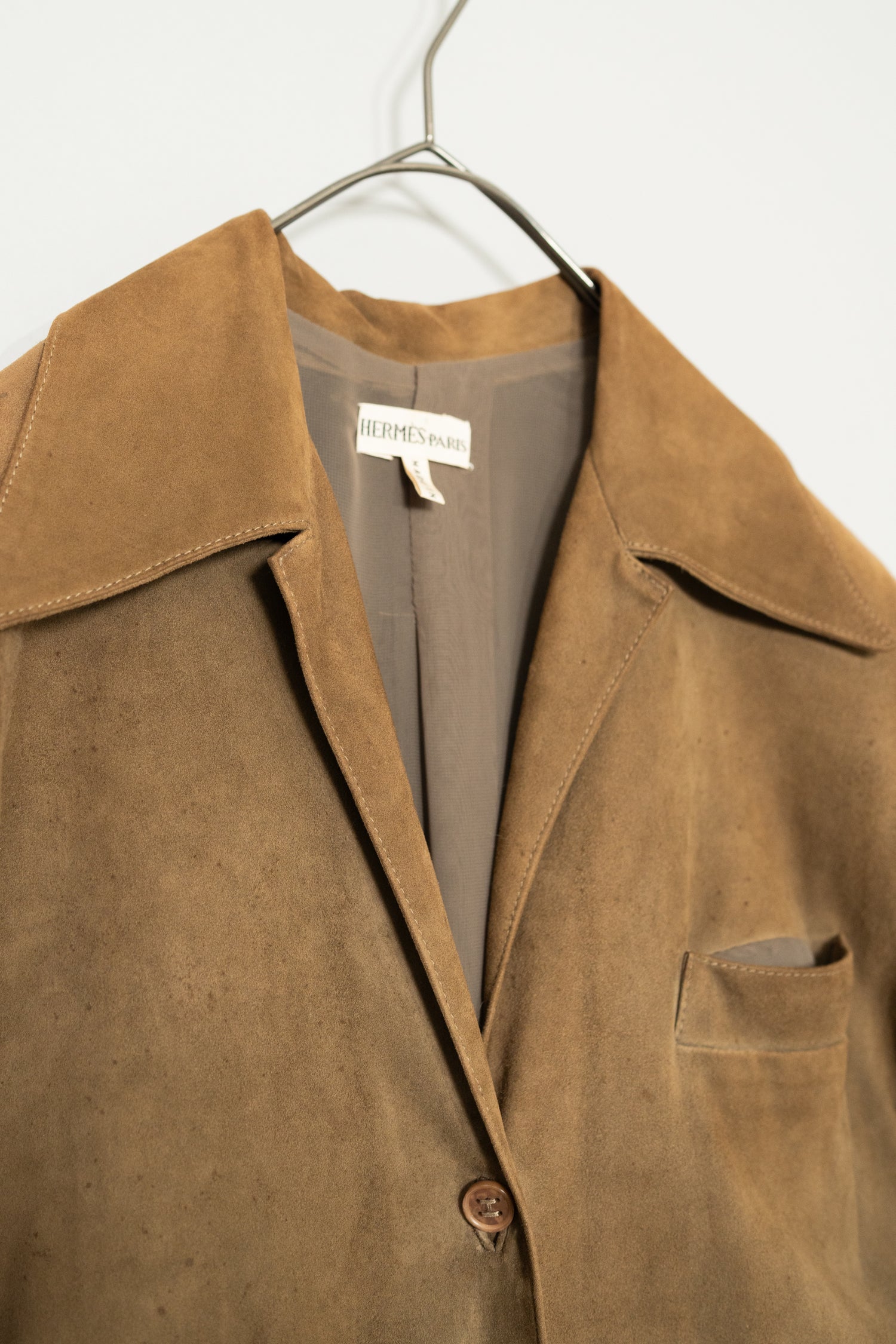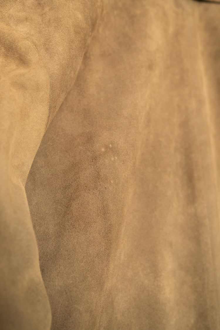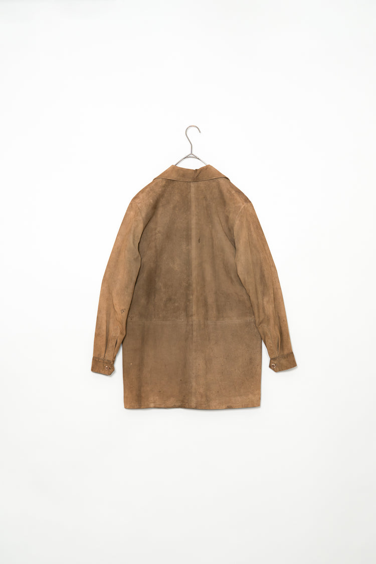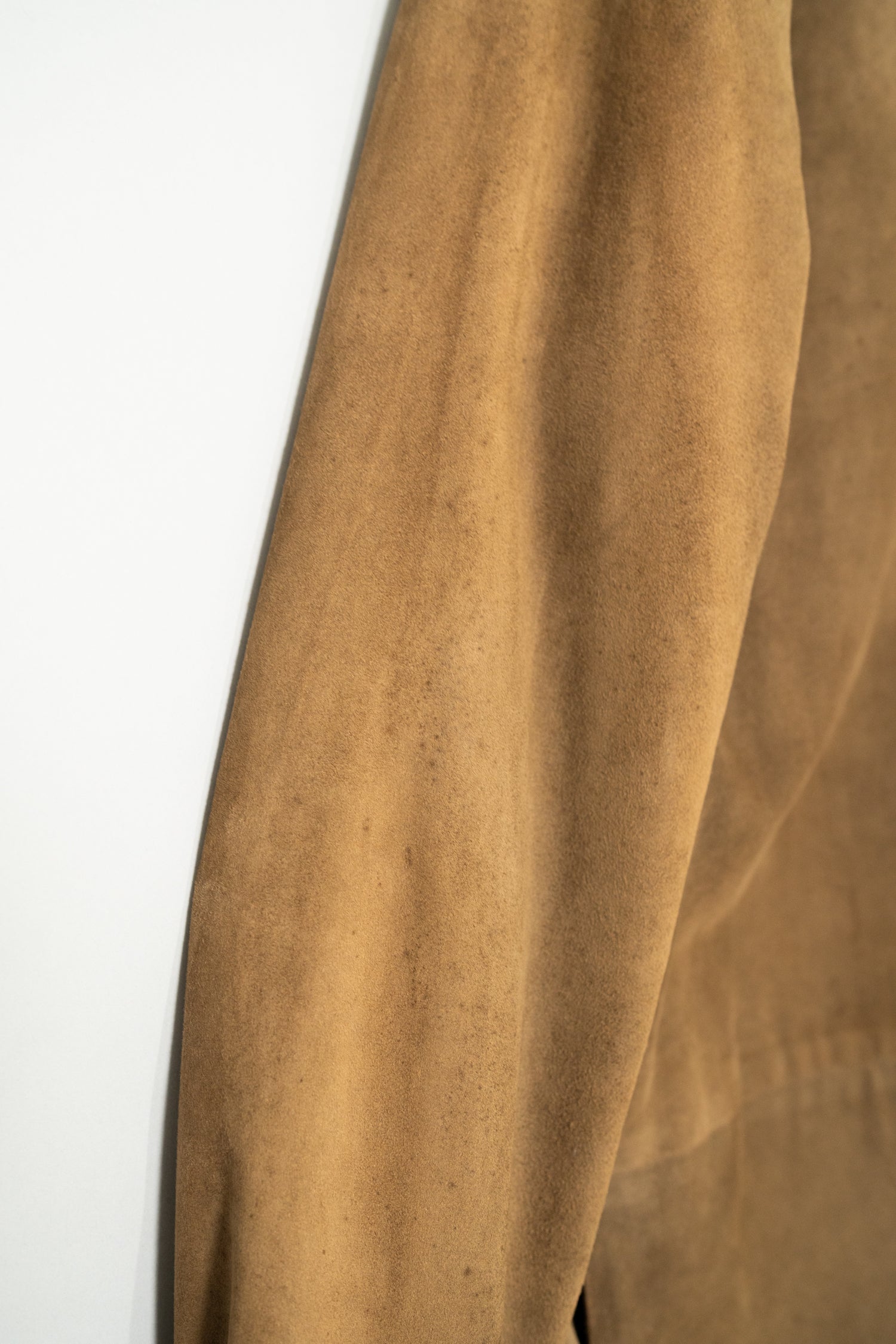 コンディションについては、レザー特有の細かなシミや経年変化が見受けられますが、これは決してネガティブな要素ではありません。ヌバックレザーは特性上、使用や経年により表情が変化しやすく、その一着ごとに異なる“味”が生まれます。新品時の均一な美しさとは異なり、時間を経たレザーには持ち主とともに刻まれたストーリーが宿り、ヴィンテージやアーカイブとしての価値をより高めます。特にマルジェラ期のエルメスは、近年のファッション市場において投資対象としても注目されており、単なる衣服を超えたカルチャー的価値を帯びつつあります。
