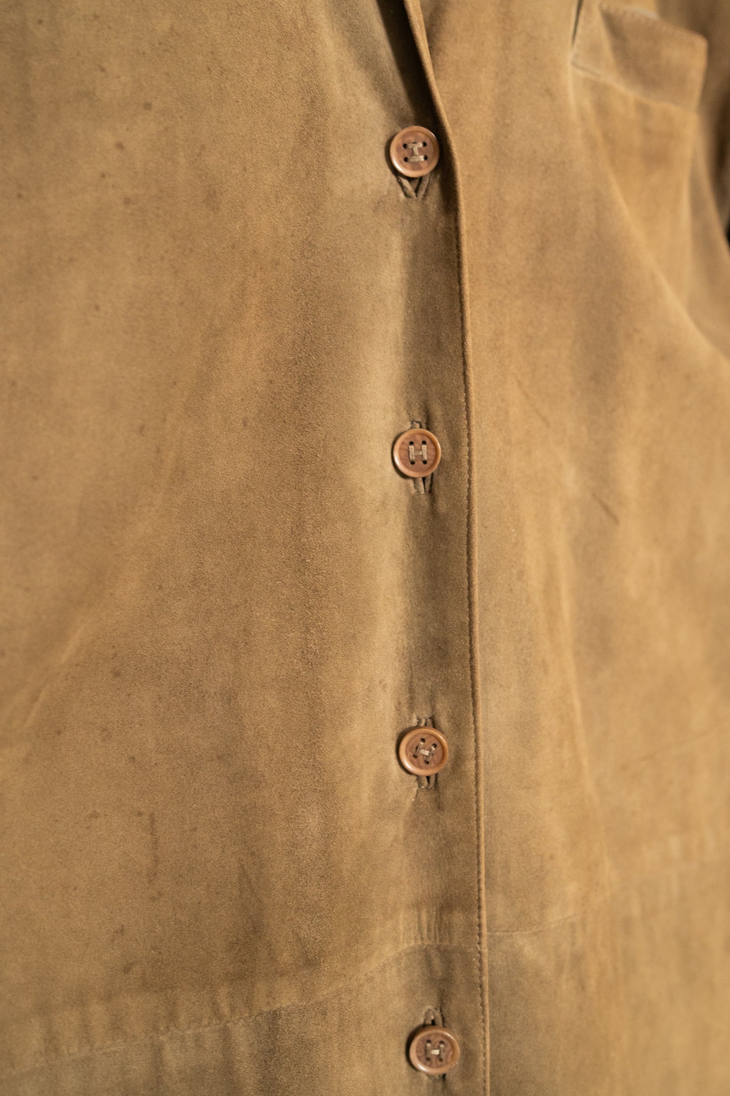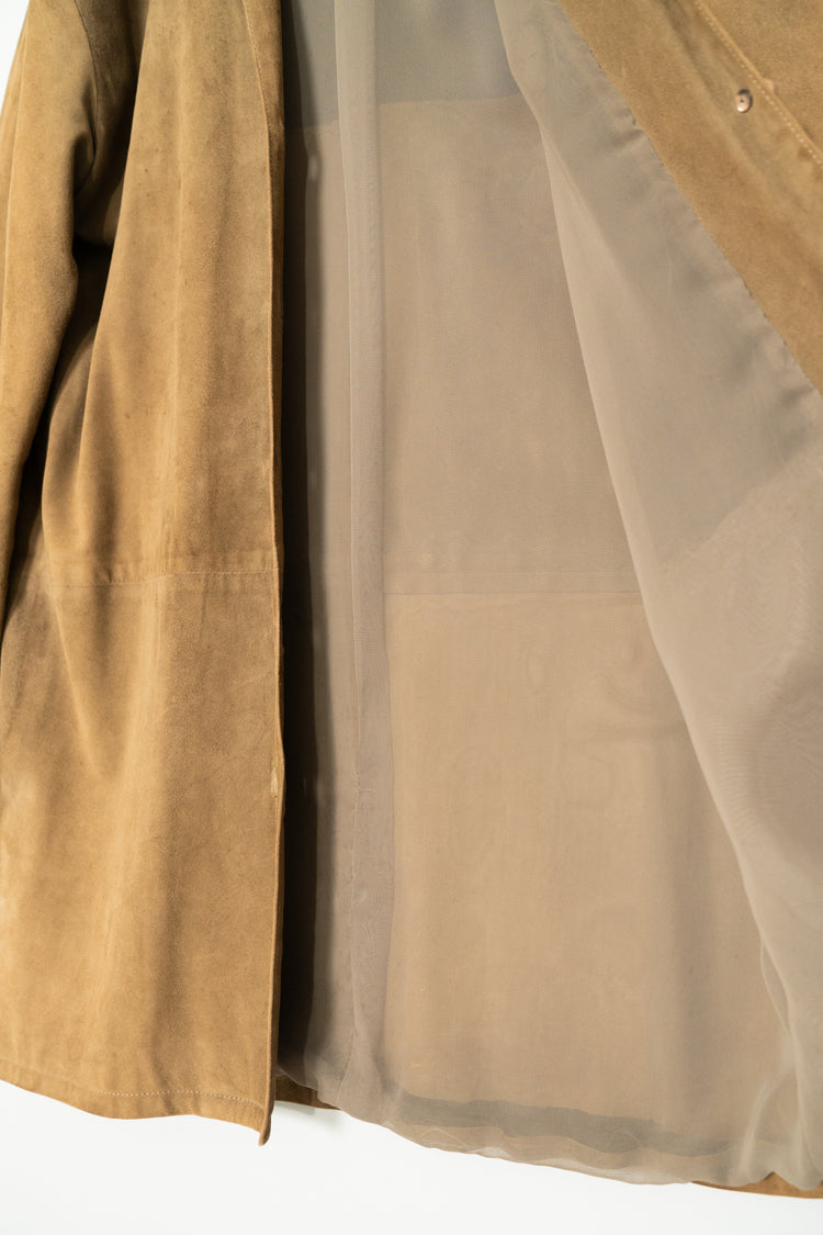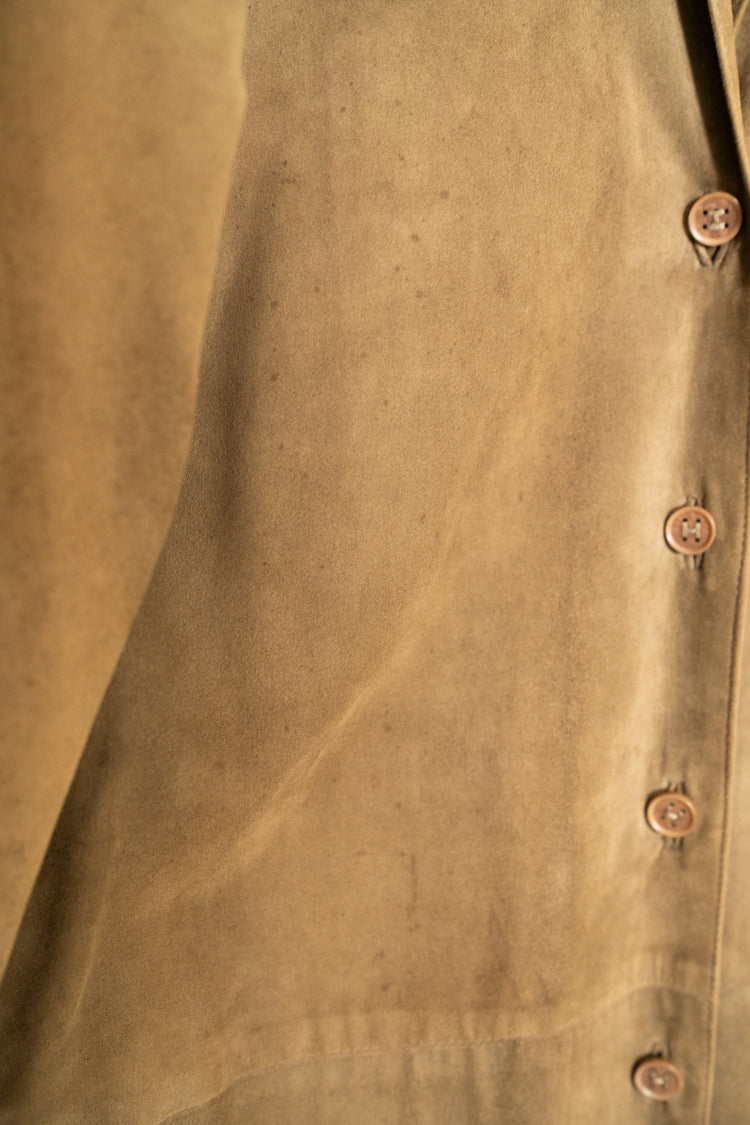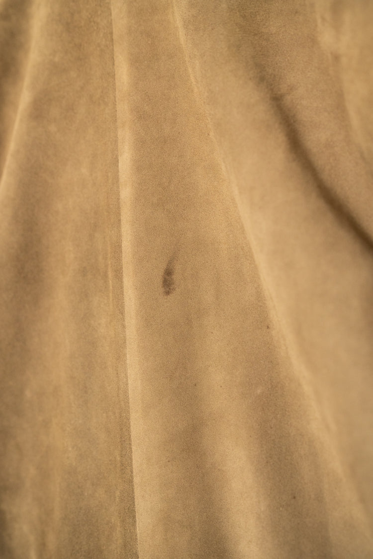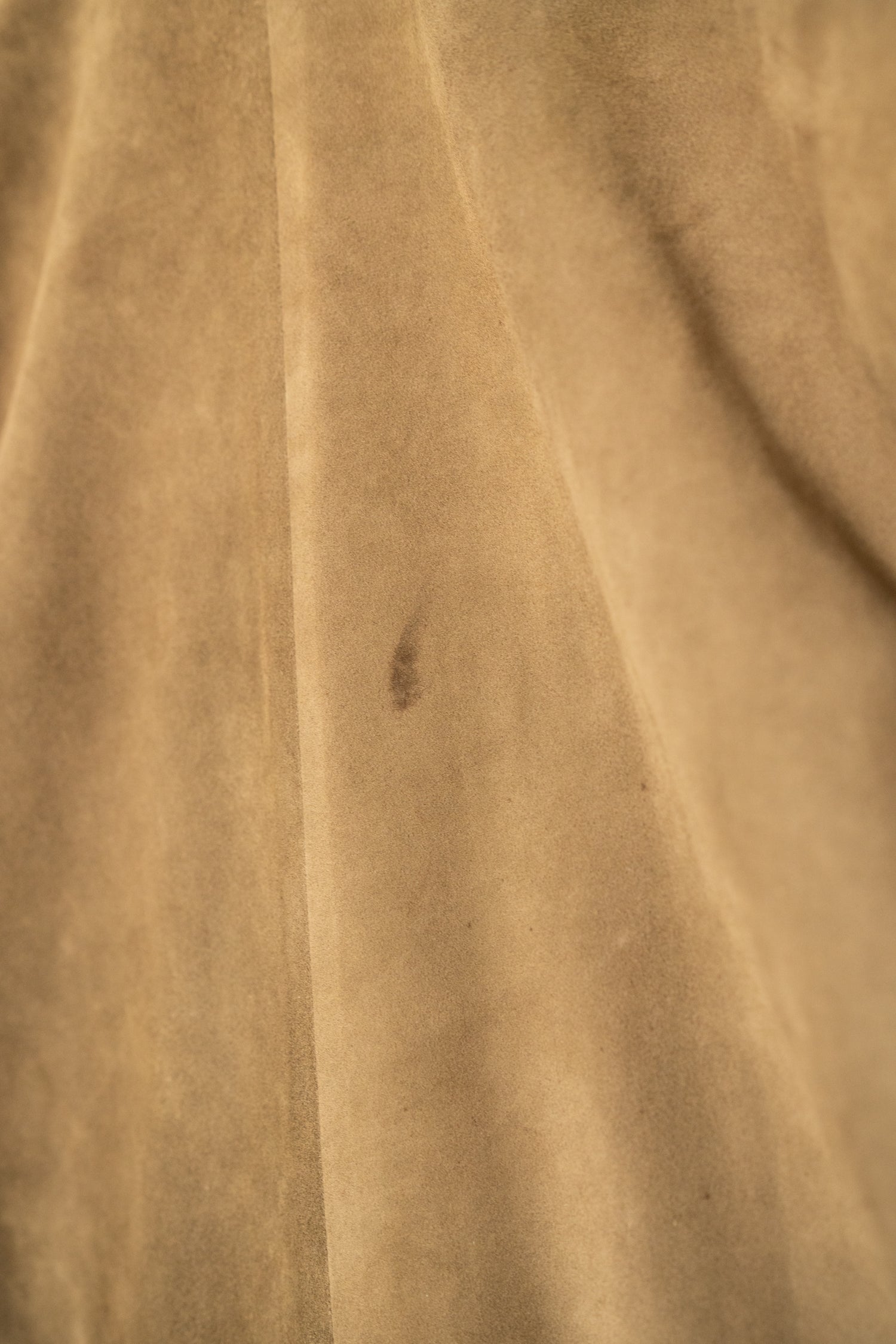 コンディションについては、レザー特有の細かなシミや経年変化が見受けられますが、これは決してネガティブな要素ではありません。ヌバックレザーは特性上、使用や経年により表情が変化しやすく、その一着ごとに異なる“味”が生まれます。新品時の均一な美しさとは異なり、時間を経たレザーには持ち主とともに刻まれたストーリーが宿り、ヴィンテージやアーカイブとしての価値をより高めます。特にマルジェラ期のエルメスは、近年のファッション市場において投資対象としても注目されており、単なる衣服を超えたカルチャー的価値を帯びつつあります。