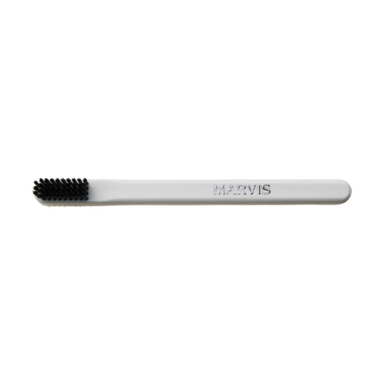 MARVISのオリジナルロゴ入り歯ブラシです。 ブラックにシルバーのロゴが施されたシンプルなデザインは、バスルームをシックに演出してくれます。また、大きめのブラシ面が、歯の表面を一気に磨き上げてくれ、より一層、爽快感を実感いただけます。