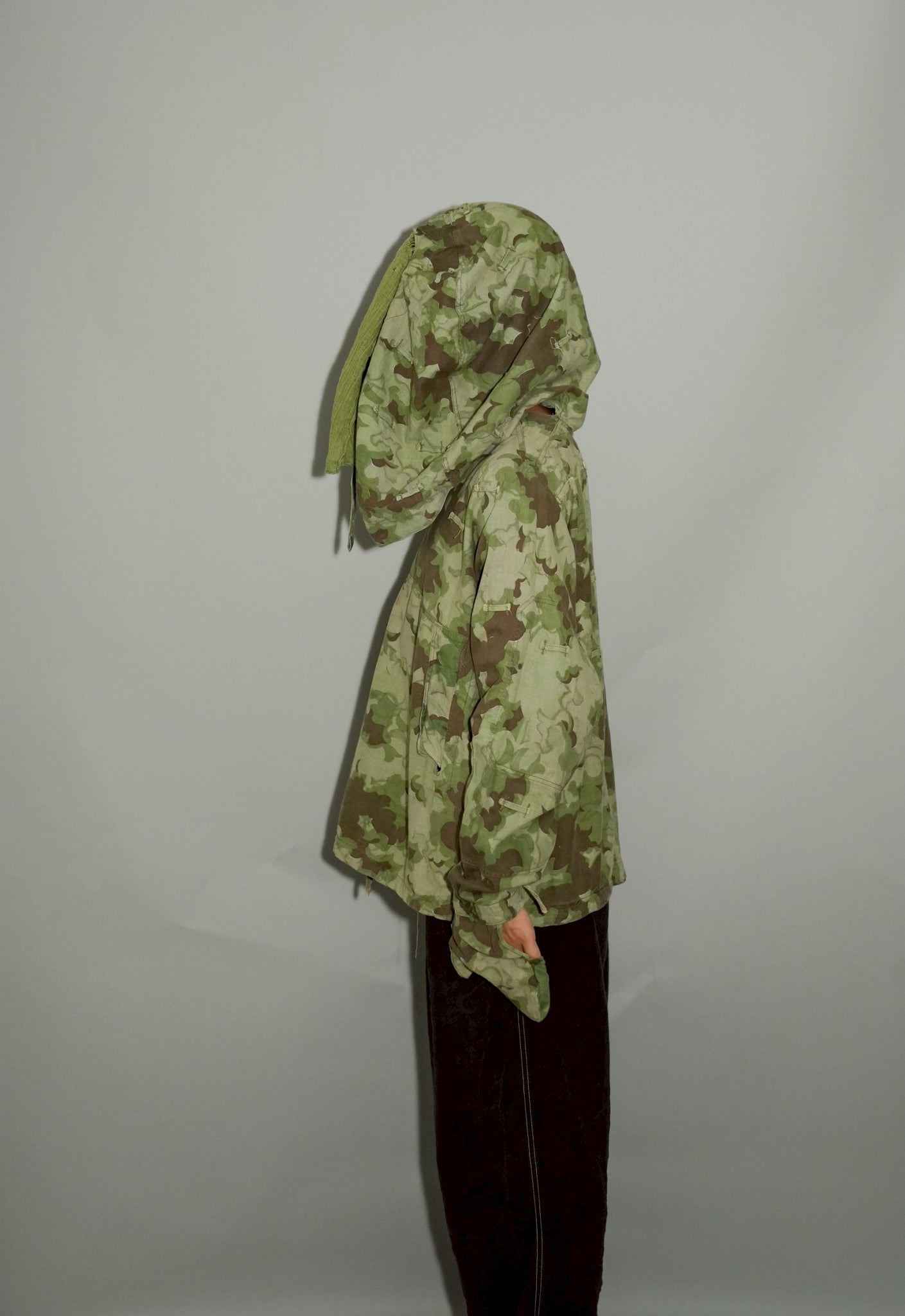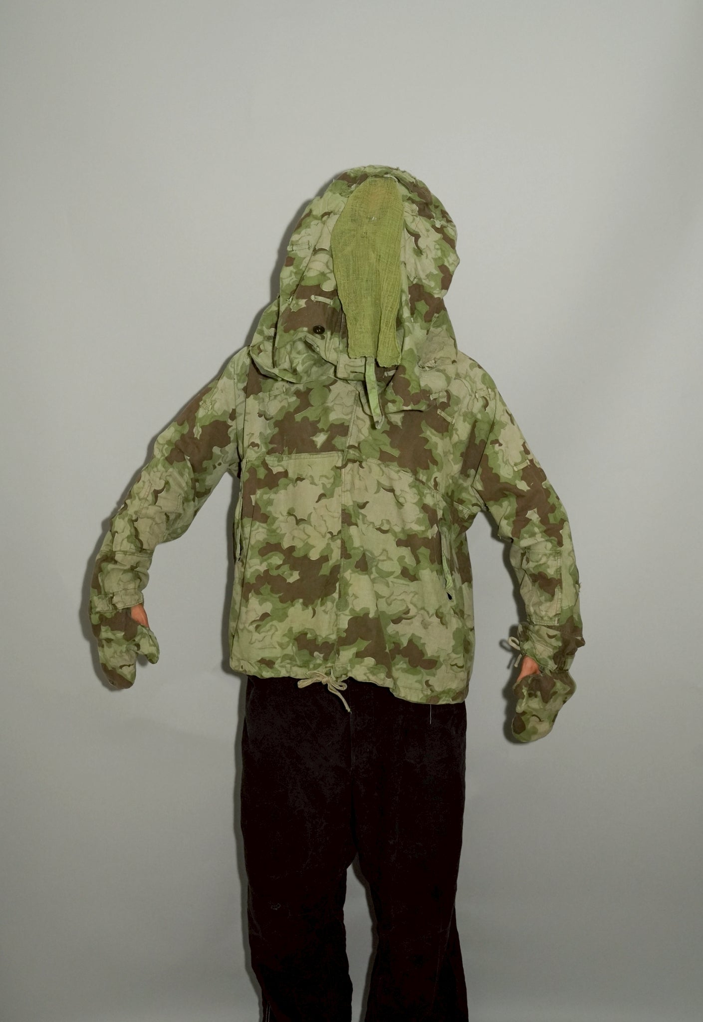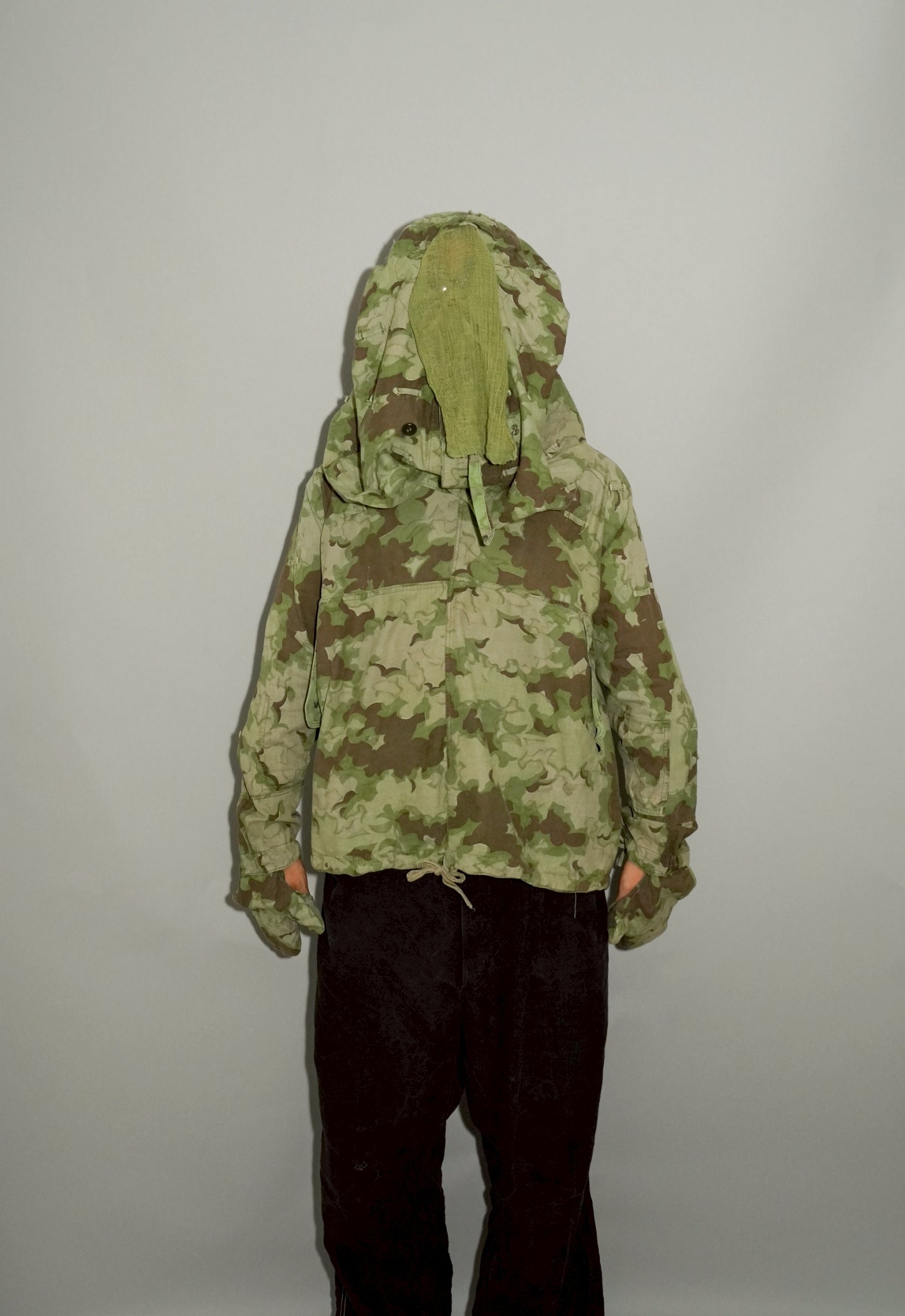 さらに資料的価値の観点から見ても、このスモックは非常に重要なピースです。軍服研究においてクラウドカモは「東欧特有の迷彩」として分類され、そのディテールは当時の軍事思想や生産背景を理解する上で欠かせない要素。ファッション資料としても、後世に残すべき文化遺産といえるでしょう。特にフードとグローブが一体化した設計は、同時期の他国軍にはほとんど見られないディテールであり、チェコスロヴァキア軍ならではの独創性を象徴しています。