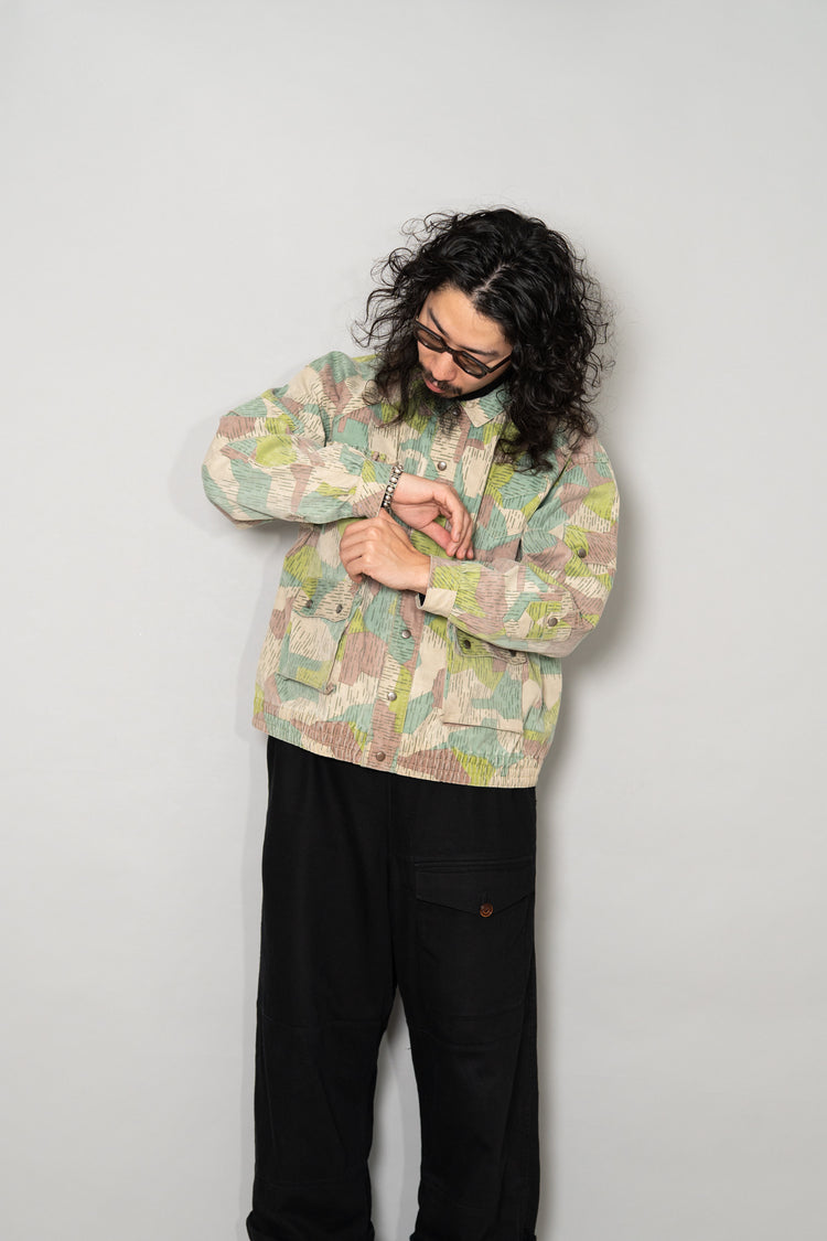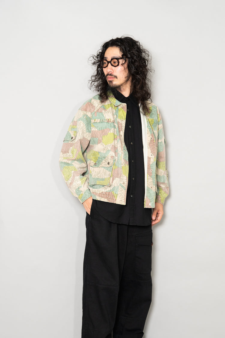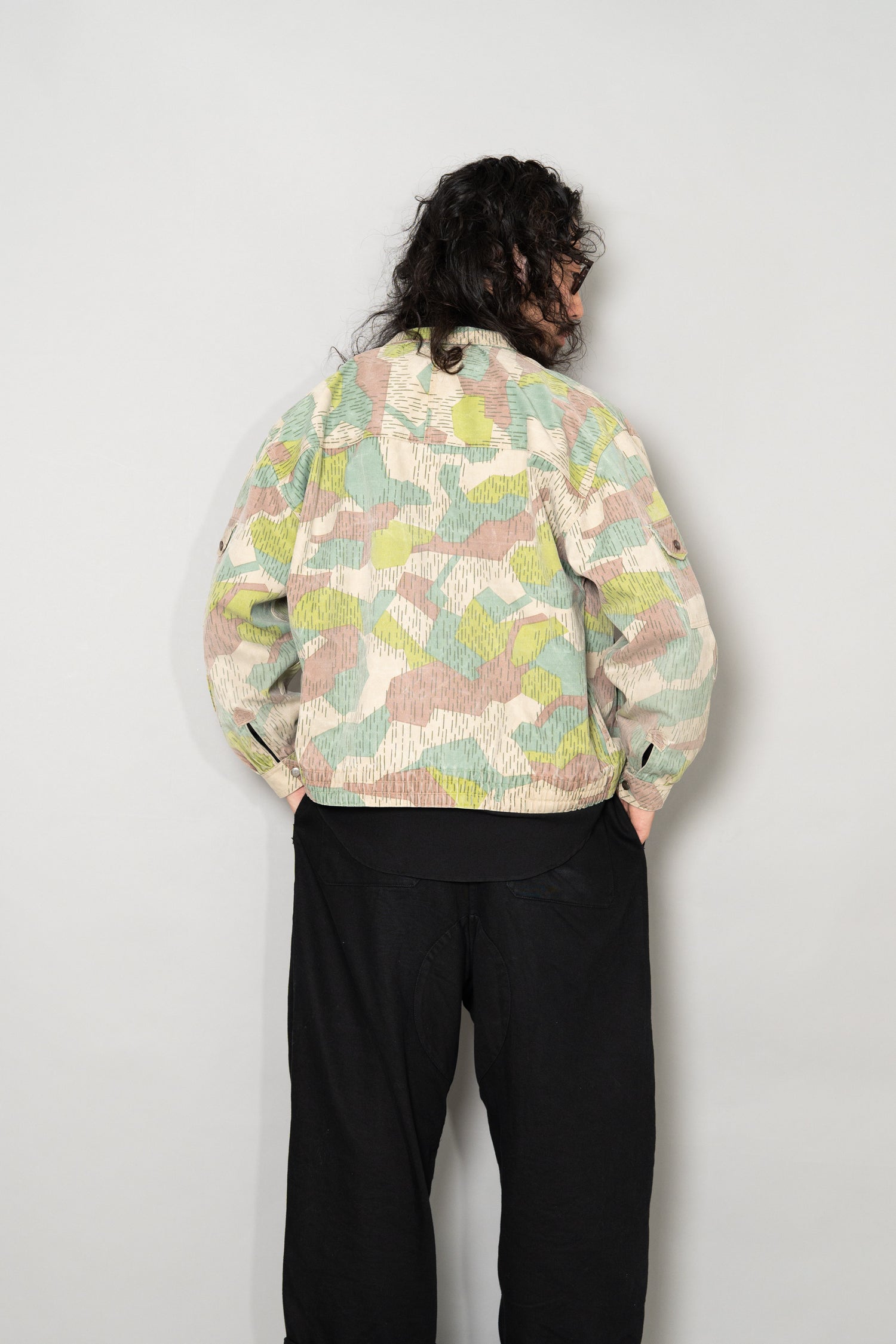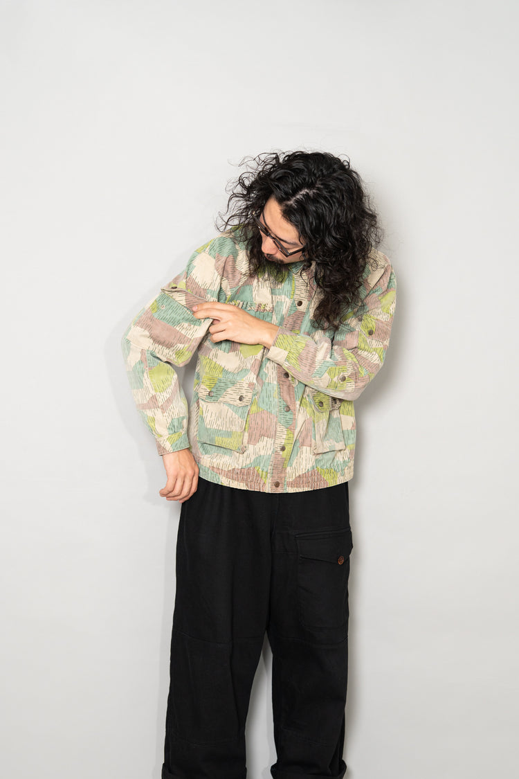 一目見ただけで強く印象に残る、他国のミリタリーウェアとは明らかに異なる存在感。こちらは1950年代、旧チェコスロバキアにおいて準軍事組織向けの訓練装備として生産されていた、通称“ズヴァザーム(SVAZARM)スプリンターカモフラージュ”を採用したジャケットです。ミリタリーという枠に収まりきらない独創的な配色とパターン構成は、半世紀以上の時を経た現在でも色褪せることなく、むしろ現代的な感性に強く訴えかけてきます。