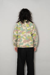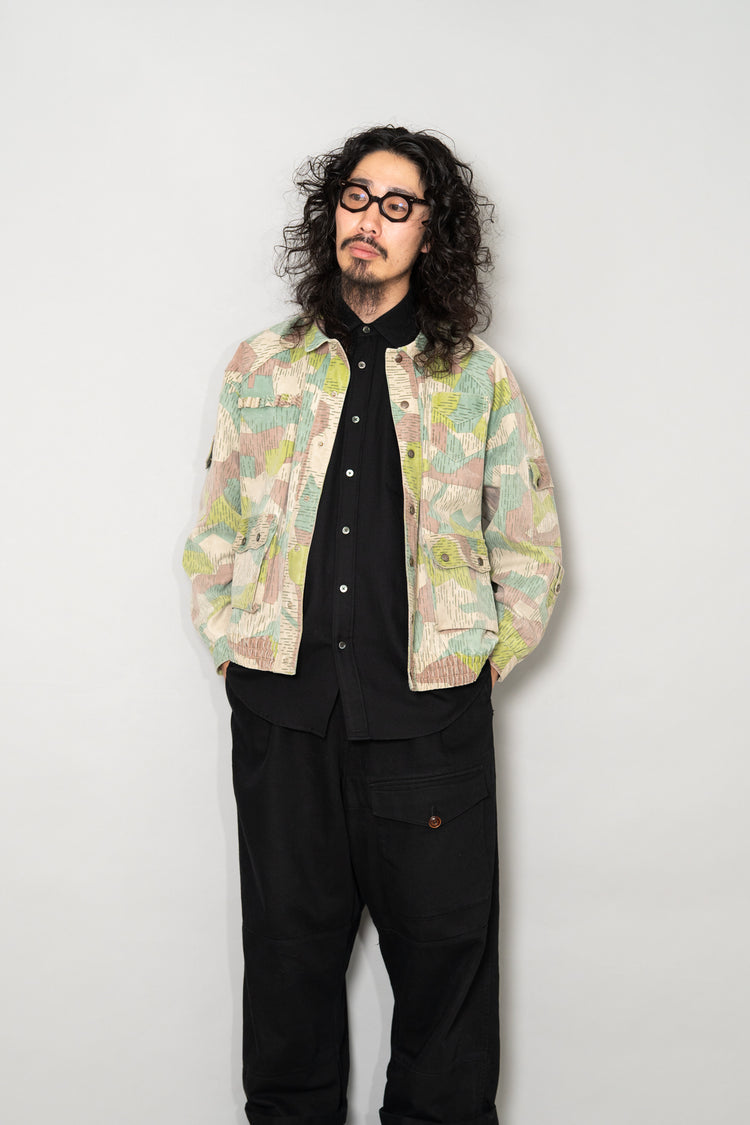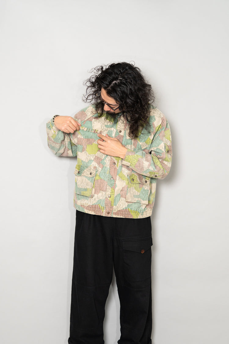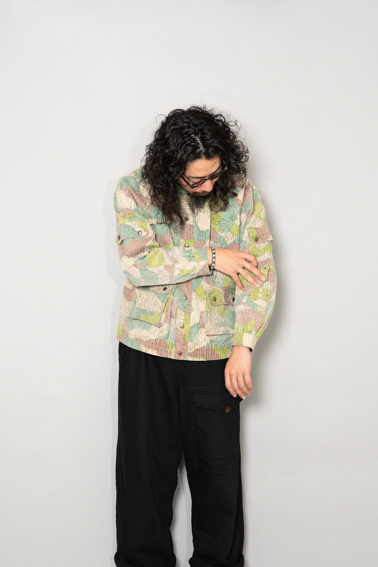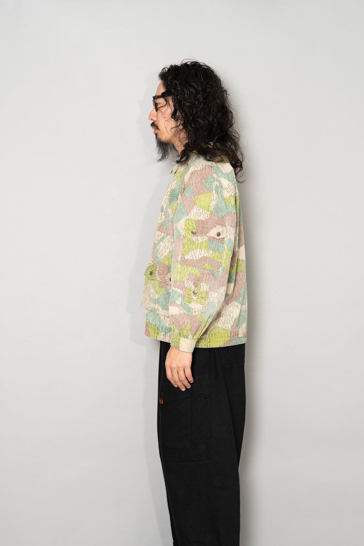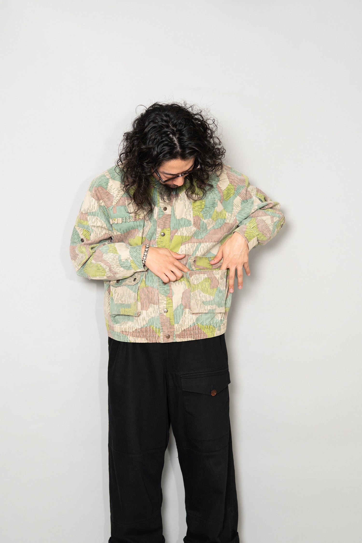 一目見ただけで強く印象に残る、他国のミリタリーウェアとは明らかに異なる存在感。こちらは1950年代、旧チェコスロバキアにおいて準軍事組織向けの訓練装備として生産されていた、通称“ズヴァザーム(SVAZARM)スプリンターカモフラージュ”を採用したジャケットです。ミリタリーという枠に収まりきらない独創的な配色とパターン構成は、半世紀以上の時を経た現在でも色褪せることなく、むしろ現代的な感性に強く訴えかけてきます。
