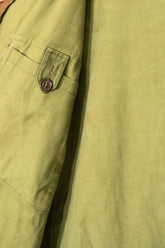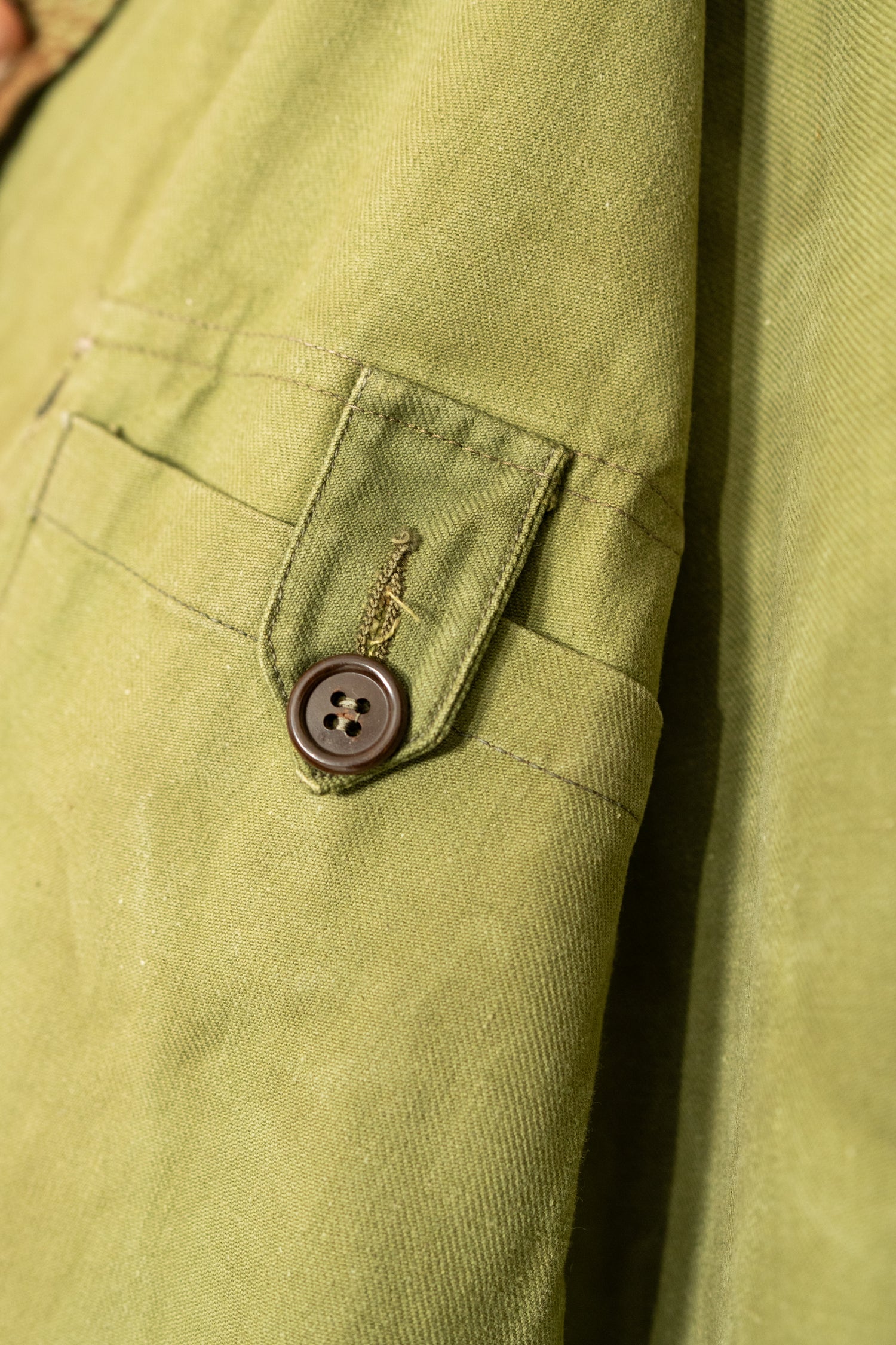 生地にはコットンツイルが使用されており、当時の軍服らしい高い耐久性を備えています。長年の使用と時間の経過によって、全体には自然なフェードが生まれ、リザードカモ特有のグリーンやブラウンのトーンが柔らかく溶け合っています。新品時の緊張感とは異なり、ヴィンテージならではの奥行きと落ち着きを感じさせる表情に仕上がっており、着用時には非常に雰囲気のある佇まいを見せてくれます。