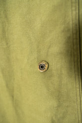 コンディションについては、年代を考慮すると非常に良好な部類に入ります。ただし、第二ボタンと下部4つのボタンが欠損しており、フロントにはボタン欠けが見られます。これは実使用を経てきた空挺部隊ジャケットとしては決して珍しいものではなく、むしろ実物ならではのリアリティを感じさせる要素とも言えるでしょう。ボタンの欠損を含めて、リペア前提で楽しむのか、オリジナルの状態を尊重するのか、所有者の価値観が問われる部分でもあります。