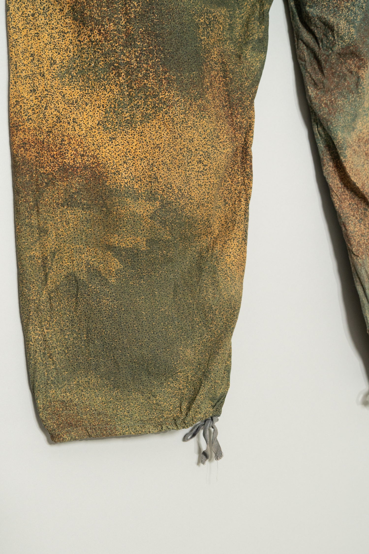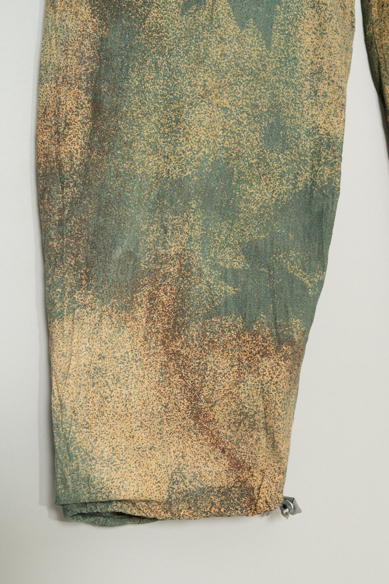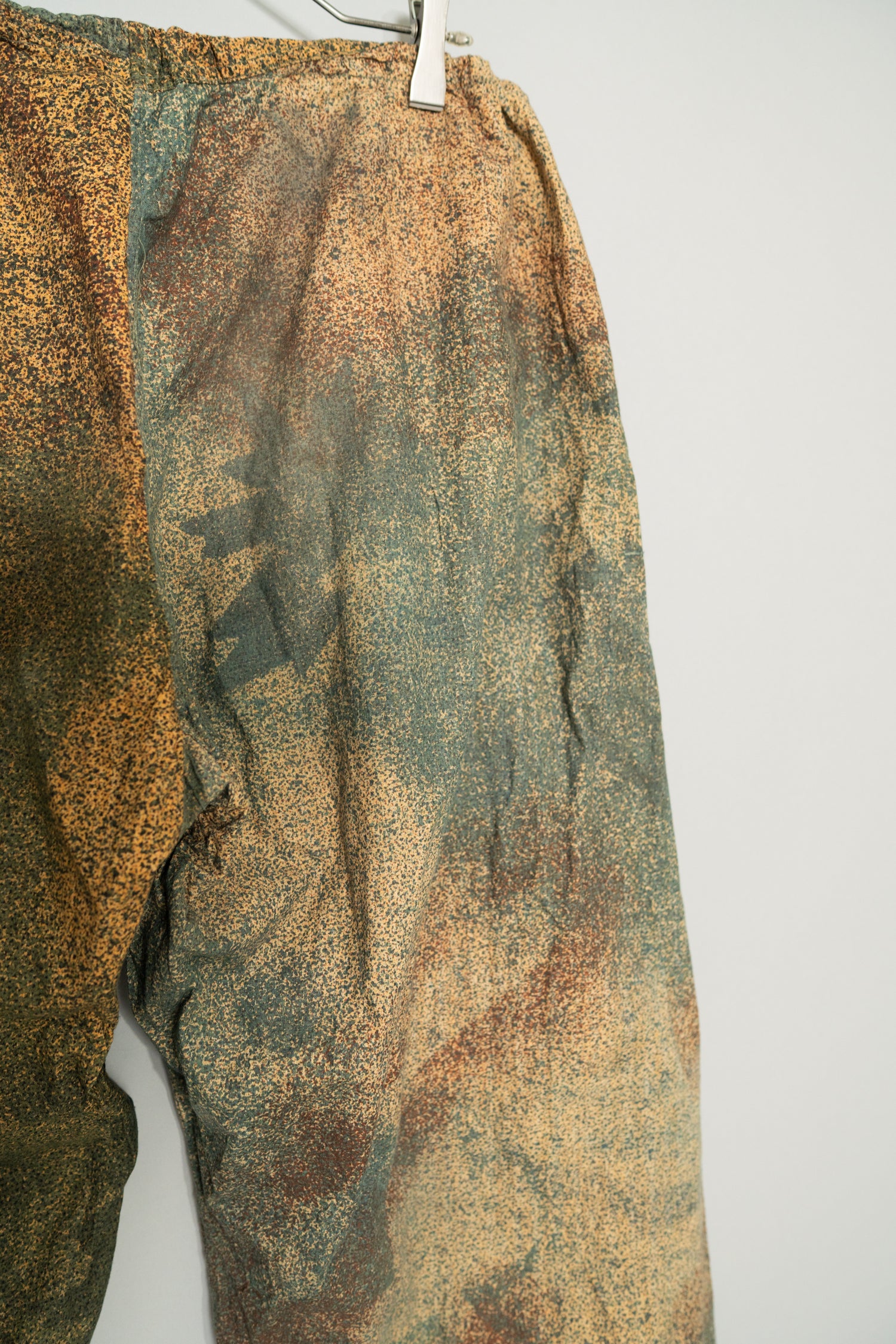 希少性の面でも、このマイクロドットカモトラウザーは年々市場流通数が減少しており、近年では状態の良い個体を見つけること自体が非常に困難になっています。上下揃いでの入手はさらに難易度が高く、コレクション目的としても、実際に着用するヴィンテージとしても価値が高騰し続けているカテゴリーの一つです。その中で本個体は、色彩の発色も良好で、生地の劣化やダメージがほとんど見られない非常に良好なコンディションを保っており、実用と保存の両立が可能な理想的な状態と言えます。