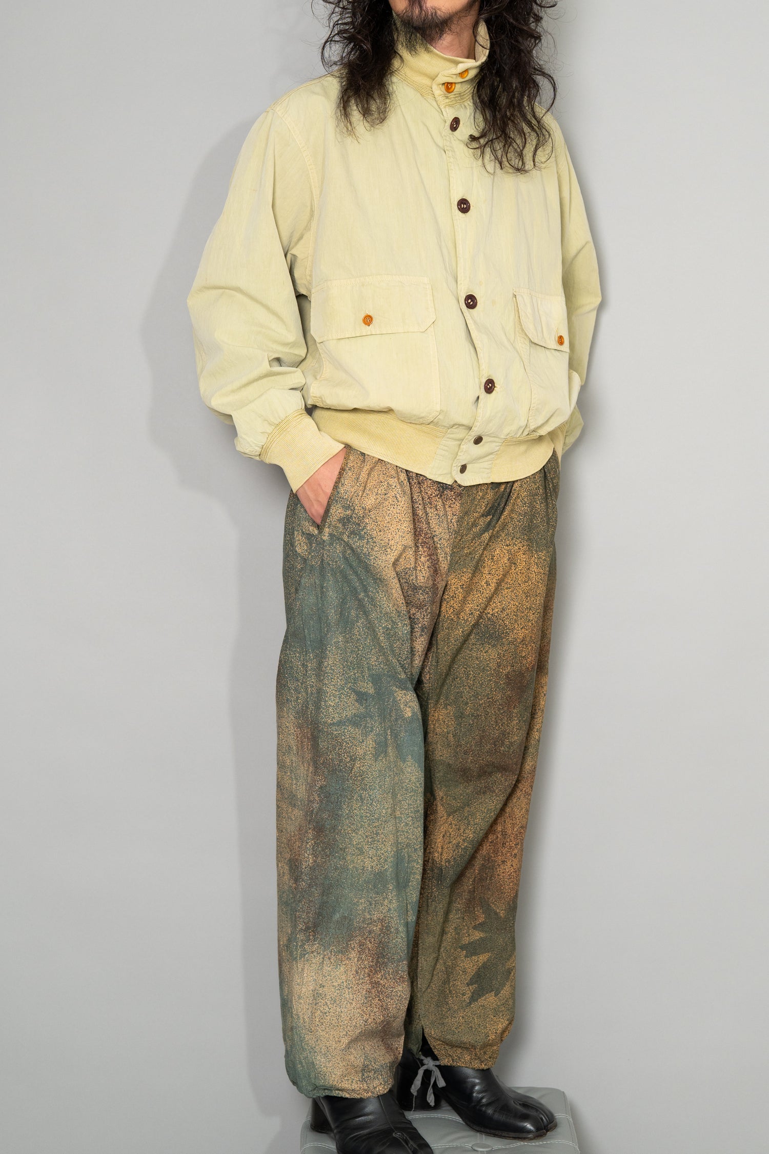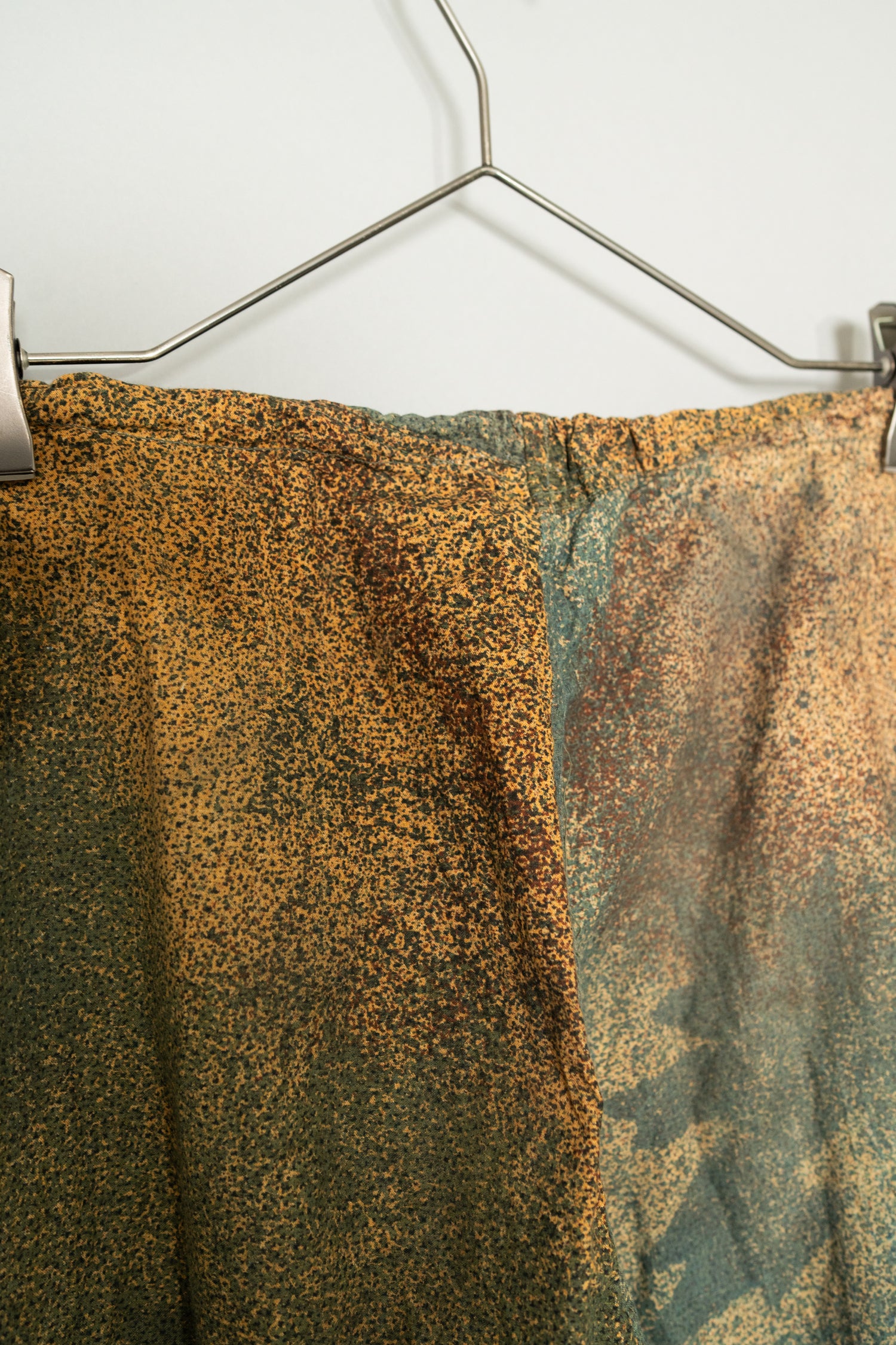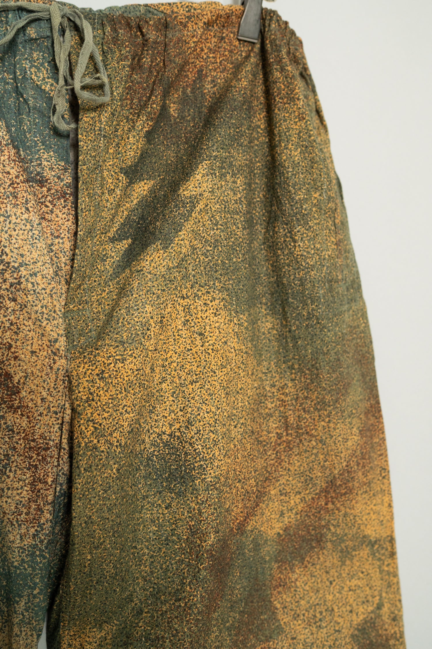 希少性の面でも、このマイクロドットカモトラウザーは年々市場流通数が減少しており、近年では状態の良い個体を見つけること自体が非常に困難になっています。上下揃いでの入手はさらに難易度が高く、コレクション目的としても、実際に着用するヴィンテージとしても価値が高騰し続けているカテゴリーの一つです。その中で本個体は、色彩の発色も良好で、生地の劣化やダメージがほとんど見られない非常に良好なコンディションを保っており、実用と保存の両立が可能な理想的な状態と言えます。