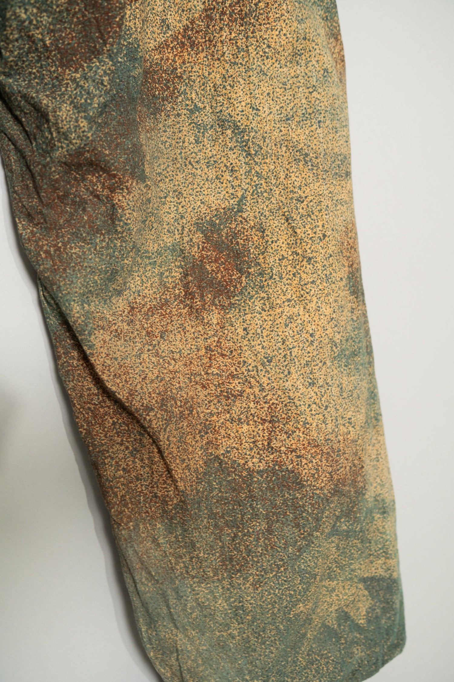 軍事技術の進化と自然環境への適応から生まれた迷彩設計、1960年代ユーゴスラビアという特殊な地政学的背景、現代ファッションにも通用する抽象的で洗練された色彩構成、そして極めて良好なコンディション。これらすべてが揃ったこの1960s Yugoslavian Army Microdot Camo Sniper Trousersは、単なるミリタリーパンツの枠を超え、デザイン史的価値と実用性を兼ね備えたヴィンテージウェアとして強くおすすめできる一本です。コレクションとしても、日常のワードローブとしても確実に満足度の高い、今後さらに入手困難になることが予想される希少なトラウザーと言えるでしょう。